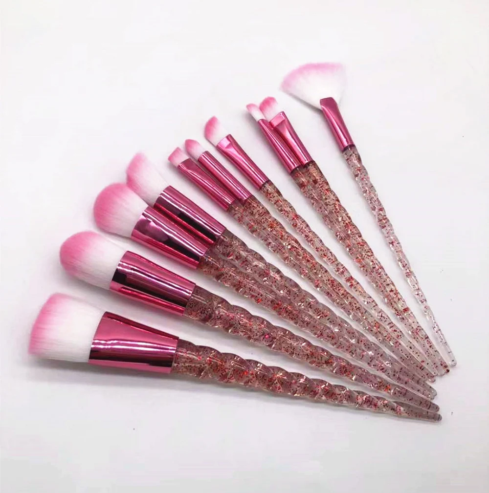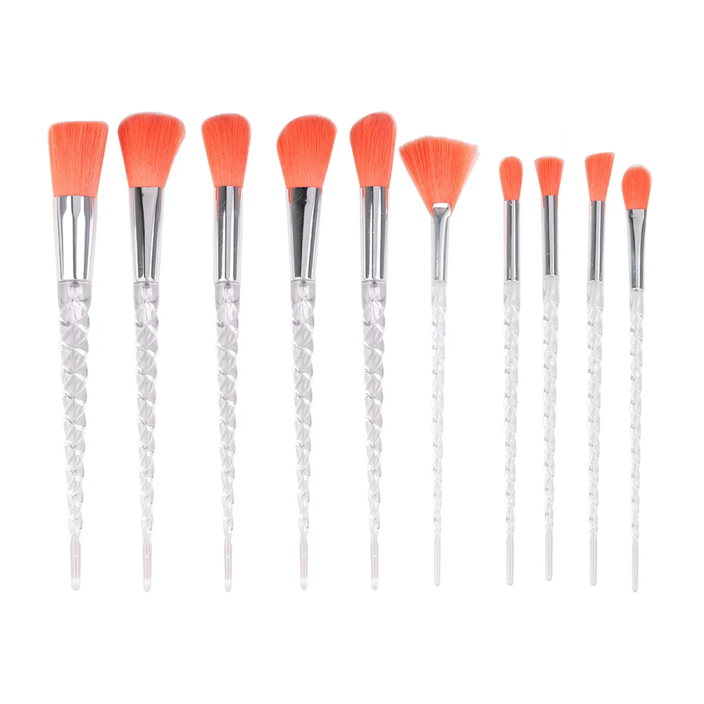 Набор кистей для макияжа с единорогом, 10 шт., кристалл спиральная ручка, для нанесения тональной основы, пудры, теней для век, бровей, макияжа кисть, косметические инструменты