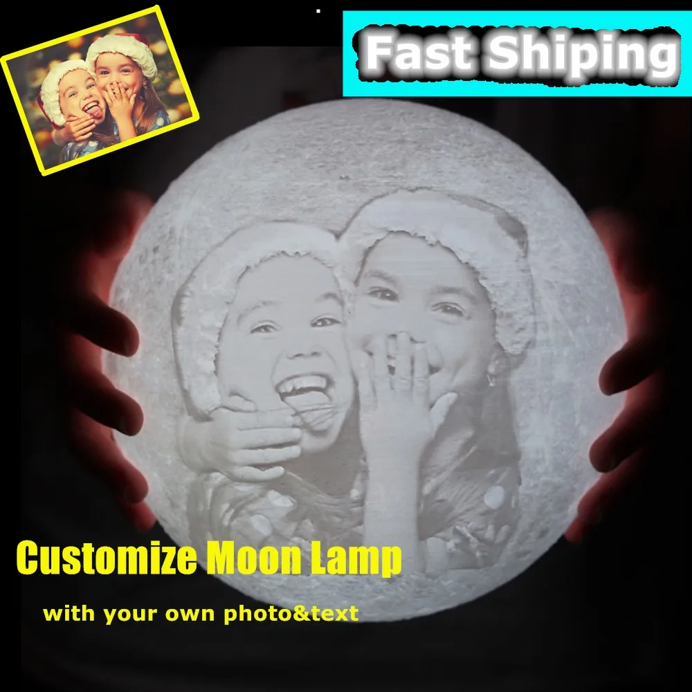 Персонализированная перезаряжаемая лампа в форме Луны с фототекстом, ночсветильник, праздник, день Святого Валентина, День матери, подарок для детей, друзей