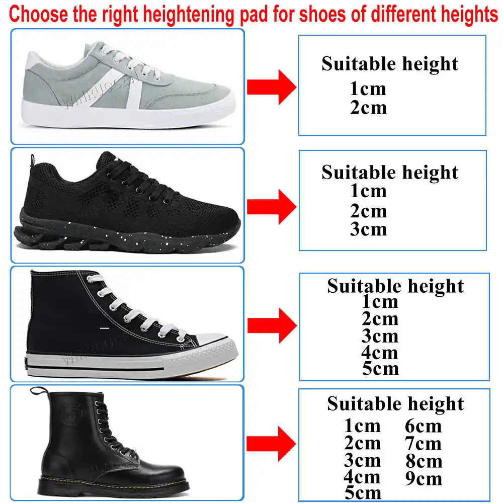 Winruochen стельки для увеличения высоты 2,5-9 см, регулируемые амортизирующие вставки для подтяжки для мужчин и женщин, набор для подъема обуви