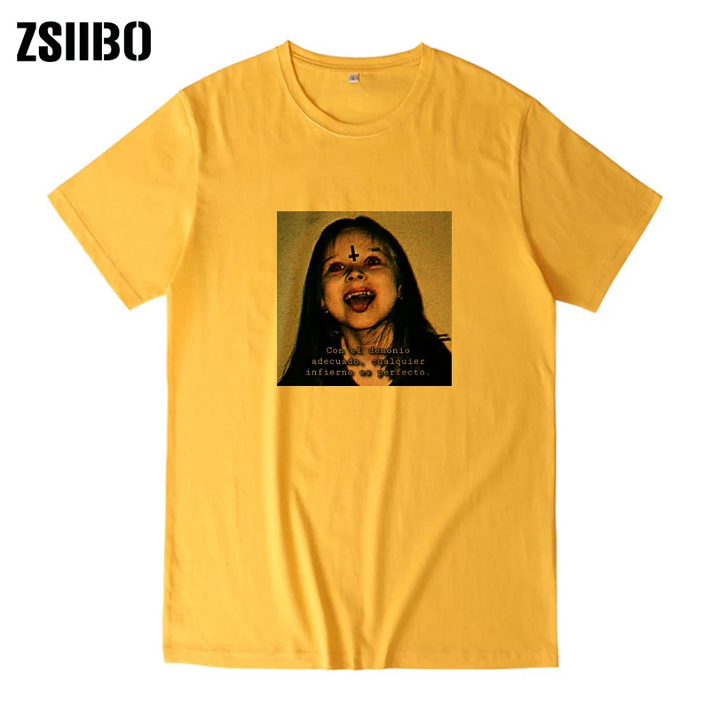 Модные весенние мужские футболки, черная забавная уличная одежда унисекс, Harajuku, жуткий демон, Повседневная футболка, футболка с криком, мужской летний топ