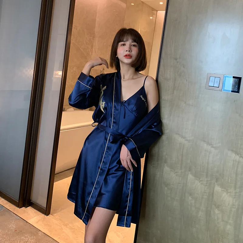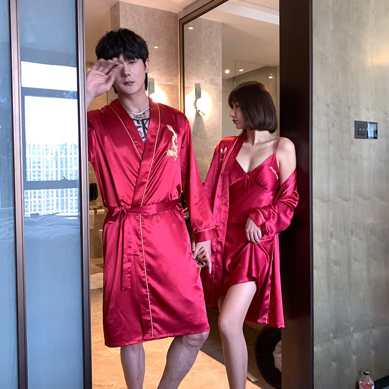 Пижамный костюм, атласный шелковый халат + шорты, Халат + ночная рубашка, пижамные комплекты, одежда для сна для пар, семейная Пижама, костюм для влюбленных