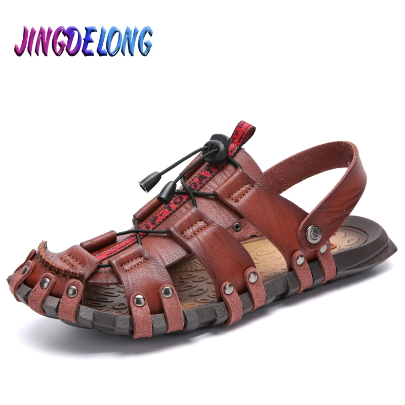 Мужские сандалии, летняя пляжная обувь, модные сандалии из натураль...