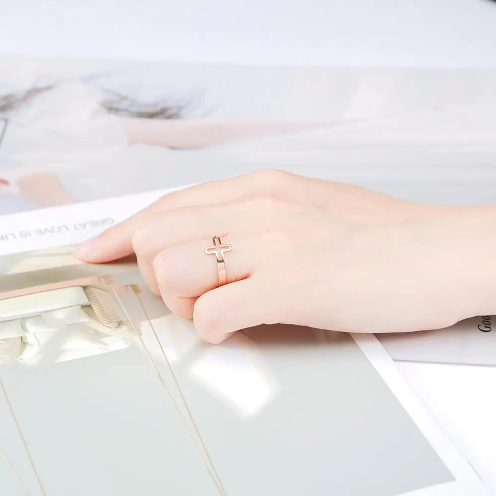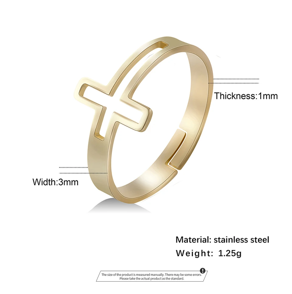 Кольцо женское из нержавеющей стали, регулируемое, с полым крестом