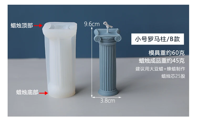 Большая римская свеча на колонне, форма для ароматерапии, гипсовая форма для украшения дома, силиконовые формы для свечей, пчелиный воск, форма для свечей