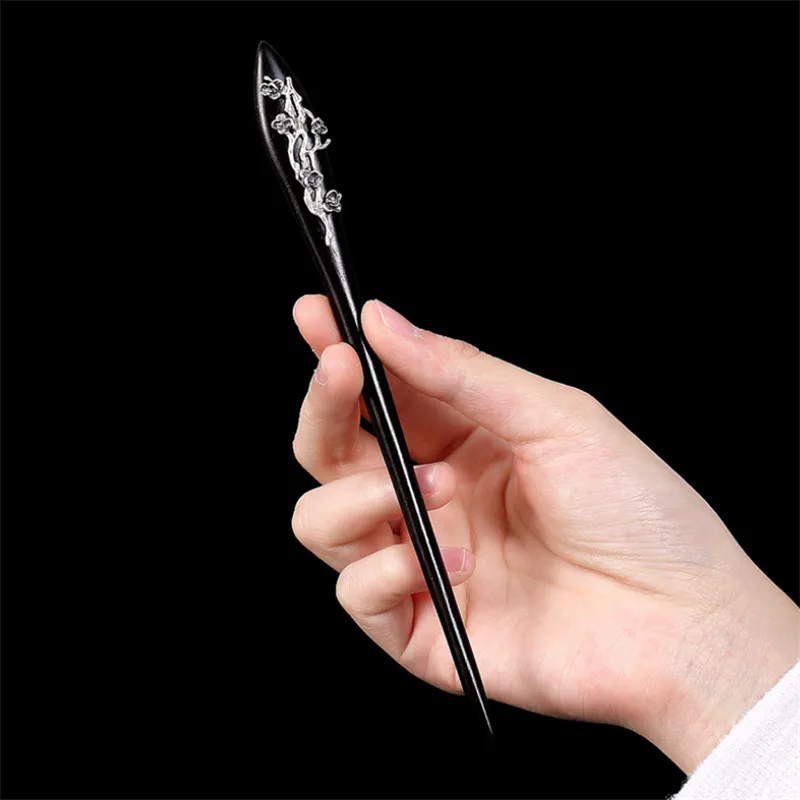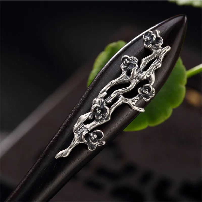Заколки для волос Uglyless из светлого дерева женские, вилки для волос из натурального сандалового дерева в ретро стиле, серебро 925 пробы, ювелирные украшения для волос с цветком сливы