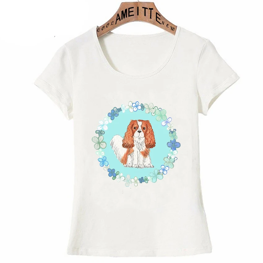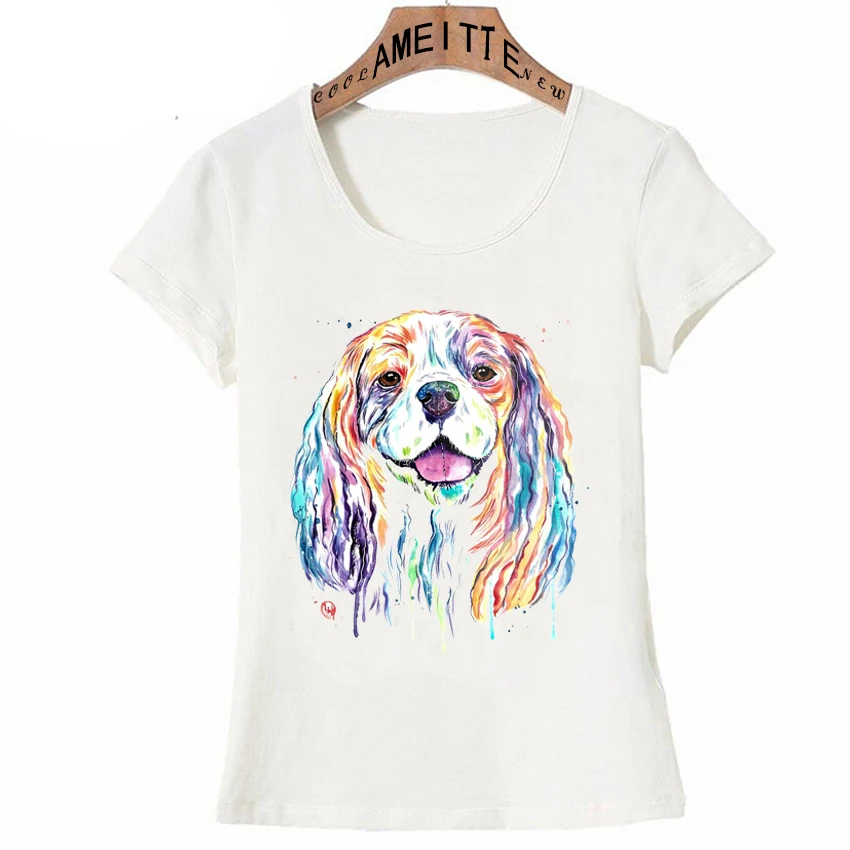Кавалер Кинг Шарль спаниель-цветная Акварельная футболка, летняя модная женская футболка с коротким рукавом, милые повседневные топы для девочек, женские футболки