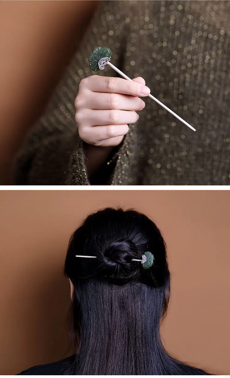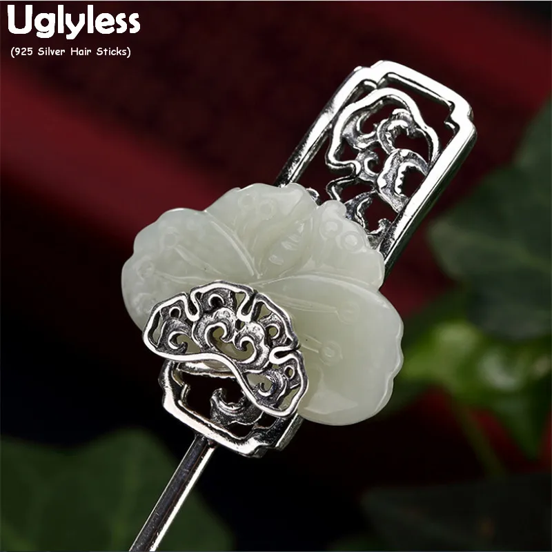 Женские украшения для волос в стиле ретро Uglyless, из натурального нефрита, бабочки, серебряные шпильки 925 пробы, тайские серебряные насекомые