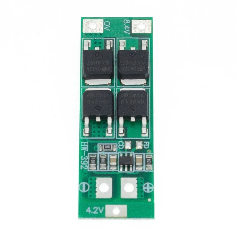 Применимый объем: подходит для литиевых батарей с номинальным напряжением 3,7 В и полным напряжением 4,2 В (включая 18650, 26650, полимерные литиевые батареи, без ограничений по размерам) Размер продукта: 45*15*3,4 мм (стандарт), 48*20*3,4 мм (балансировка) Напряжение зарядки: 8,4 В-9,0 в непрерывный ток разряда (верхний предел): 20A (Если охлаждающая среда не является хорошей, уменьшите использование тока нагрузки) непрерывный ток заряда (верхний предел): 10А стандартное издание: подходит для запуска Сверл с токами до 25А ниже 50 Вт, или резистивные нагрузки ниже 168 Вт. Сбалансированная версия: подходит для пусковых токов ниже 25 А и ниже 50 Вт, или резистивных нагрузок ниже 168 Вт, с сбалансированной функцией зарядки. Примечание 1: для успешного запуска дрели требуется два аккумулятора 10C-20C или четыре аккумулятора 5C-10C (Обычный 18650 не может начать дрель!); 0 В и 8,4 В кабель, используйте 2 квадратных мм над медным проводом (Не используйте никелевую пластину!) примечание 2: Подключите 0 В, 4,2 в, 8,4 в строго согласно схеме. При первом подключении аккумулятора, он должен быть заряжен перед выходом. Примечание 3: когда аккумулятор заряжается, «430» сопротивление нагреванию является нормальным явлением, что указывает на то, что схема выравнивания работает; если сопротивление «430» также нагревается в состоянии не зарядки, пожалуйста, проверьте, подключена ли не та линия. Для некоторых клиентов с плохой электронной основой, пожалуйста, объясните: Не смешивать хорошие батареи и плохие батареи вместе! Емкость/внутреннее сопротивление 2 батарей должны быть как можно ближе! (1 хороший аккумулятор + 1 плохой аккумулятор = 2 эффекта использования батареи).