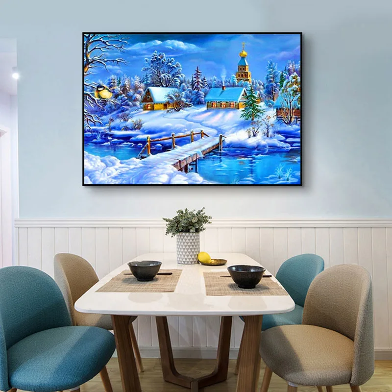 Набор для вышивки стразами 5D сделай сам, вышивка снегом, с квадратнымикруглыми стразами, зимний пейзаж, украшение для дома