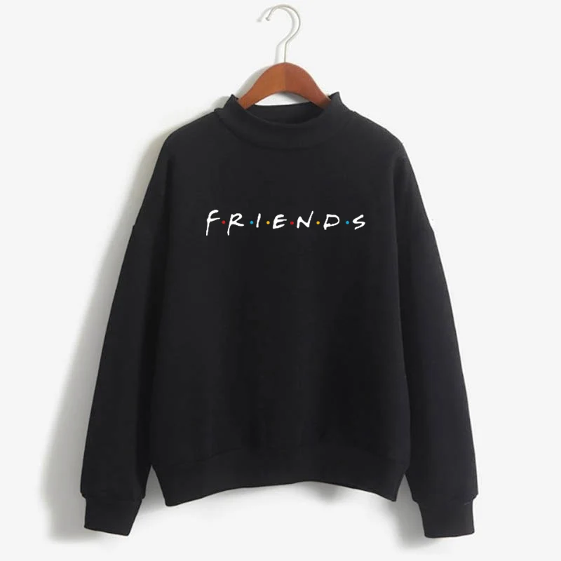 Худи с логотипом друзей, черная Повседневная флисовая куртка с длинным рукавом и надписью в стиле Харадзюку, Свитшот
