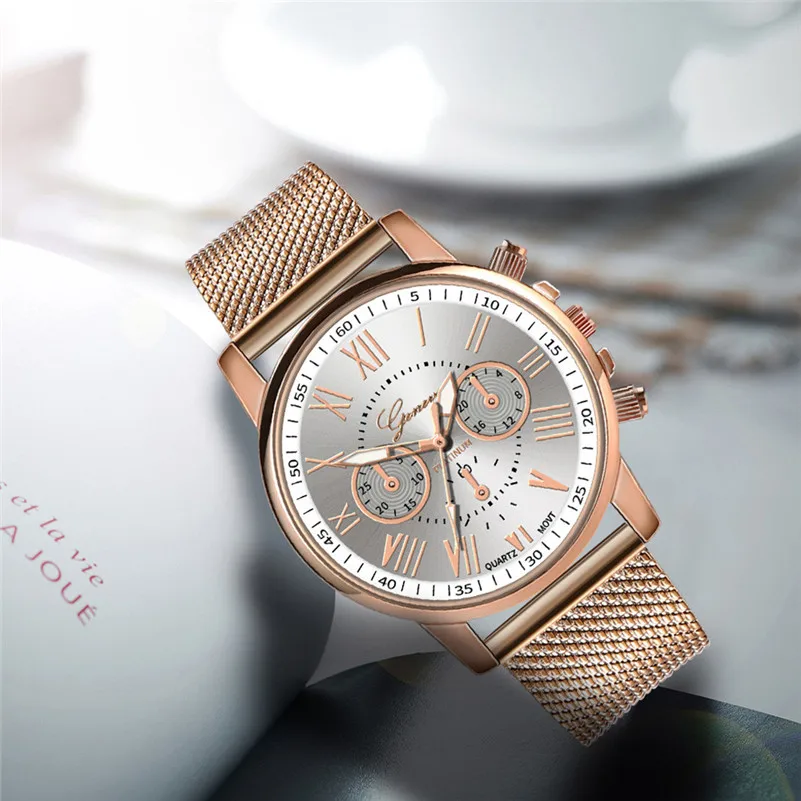 Женские наручные часы с сетчатым браслетом, часы цвета розового зол...