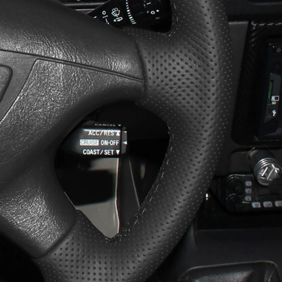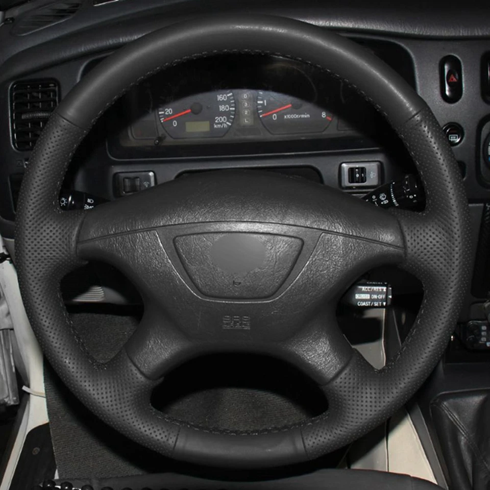 Сшитая вручную черная накладка на руль автомобиля из натуральной кожи сделай сам для Mitsubishi Pajero Sport 2004 Montero Sport 2004