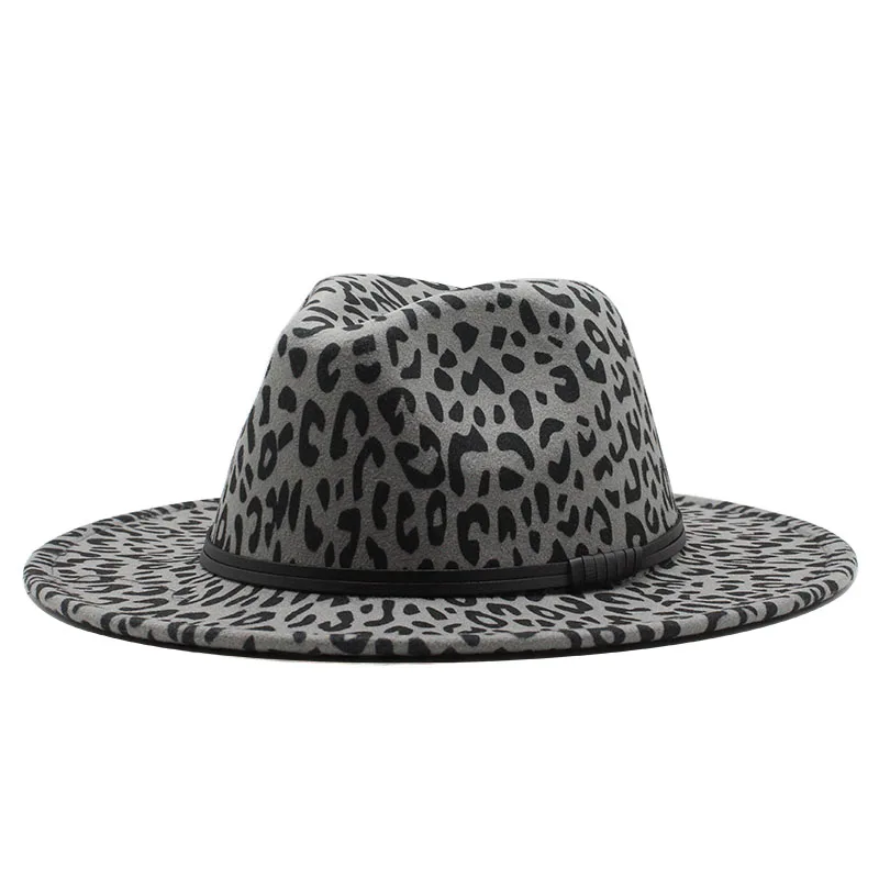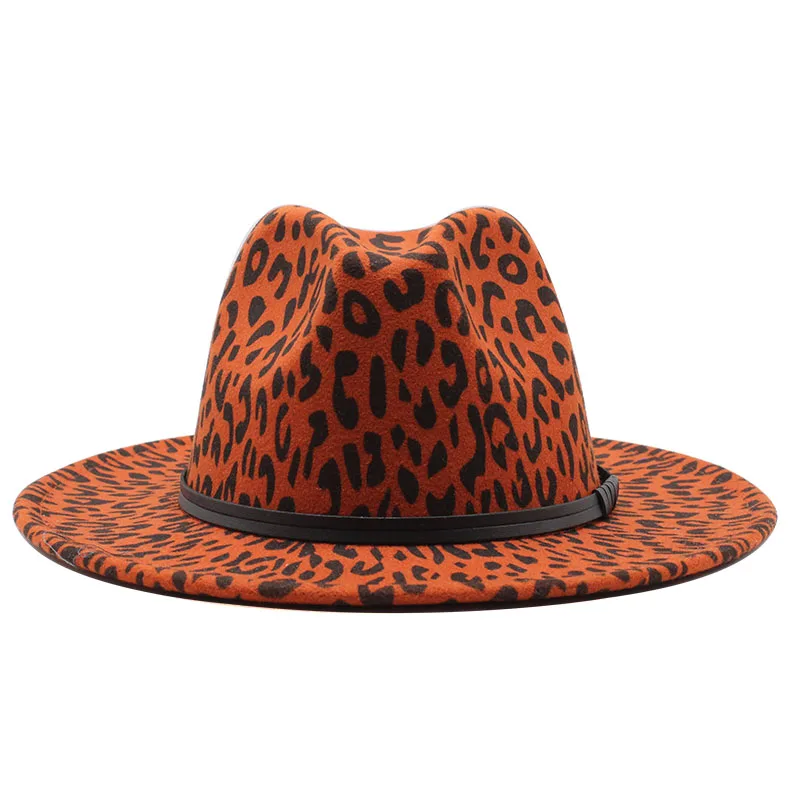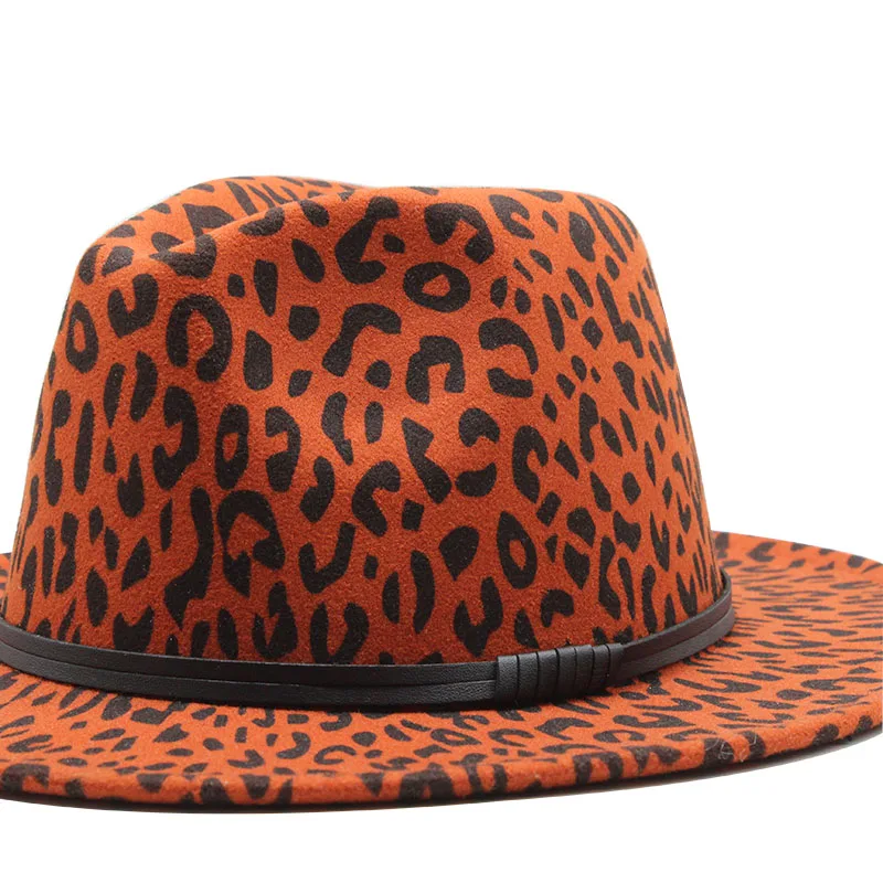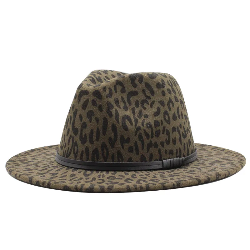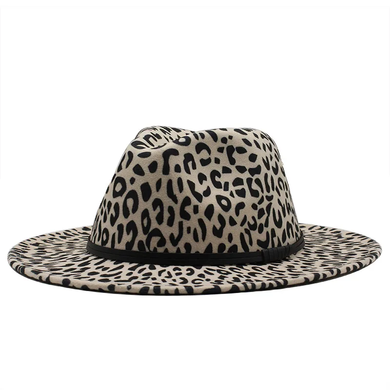 Зимние классические шапки для мужчин большого размера с широкими полями, кепка Fedora Sombrero, элегантные женские церковные шапки с леопардовым принтом, Шерстяная кепка