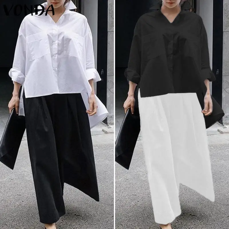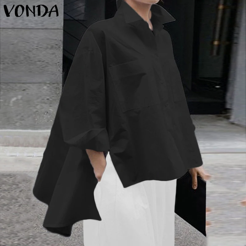 Элегантная Женская Туника Асимметричные рубашки с отложным воротником вечерние топы 2022 VONDA весенне-летняя блузка женская Повседневная блуза