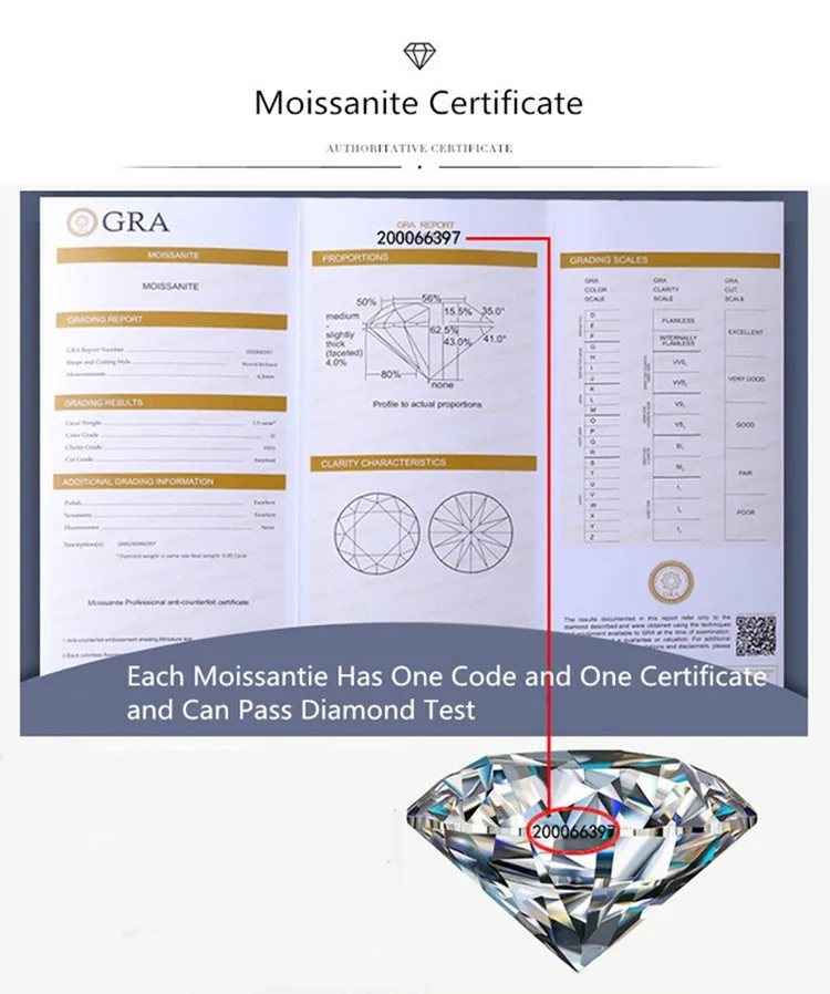 Прошел Diamond тесты идеально Муассанит 925 стерлингового серебра 1...
