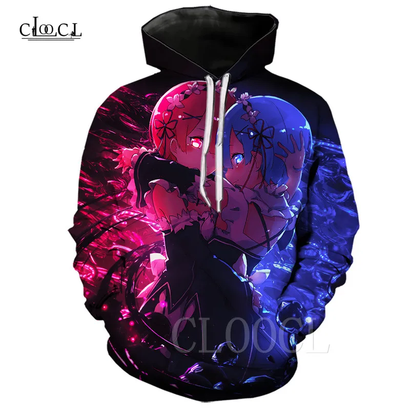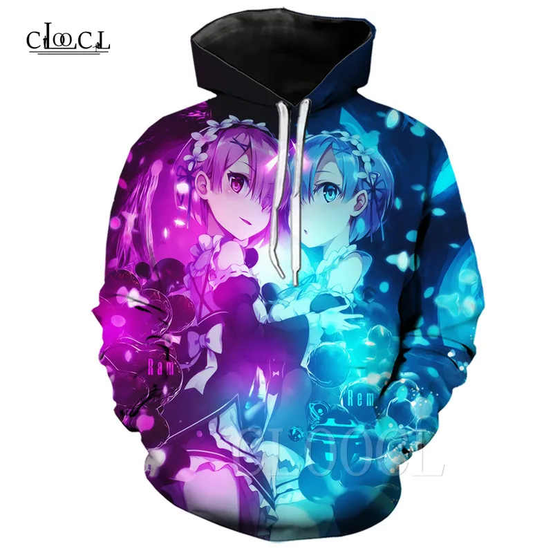 Толстовка Loli Мужскаяженская с 3D-принтом, милая фуфайка с капюшоном в японском стиле аниме Re:zero Rem Ram, горничная одежда для косплея отаку