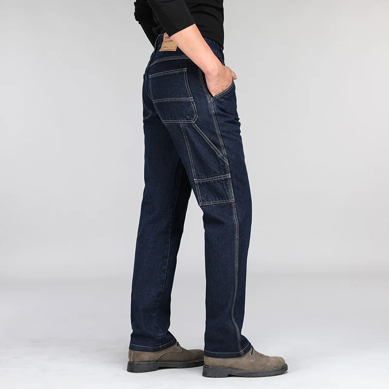 Джинсы мужские, хлопковые, прямые, с несколькими карманами, на весну и осень