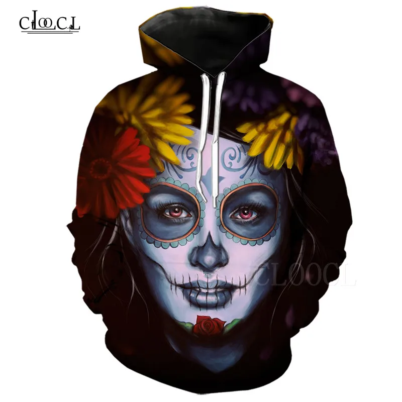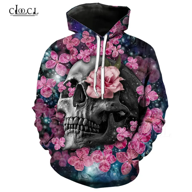 Новые с жутким черепом с капюшоном для мужчин и женщин в стиле Харадзюку Толстовка 3D цветочный Рисунок розы, повседневная одежда с изображением черепа размера плюс с капюшоном, пуловер, одежда для улицы