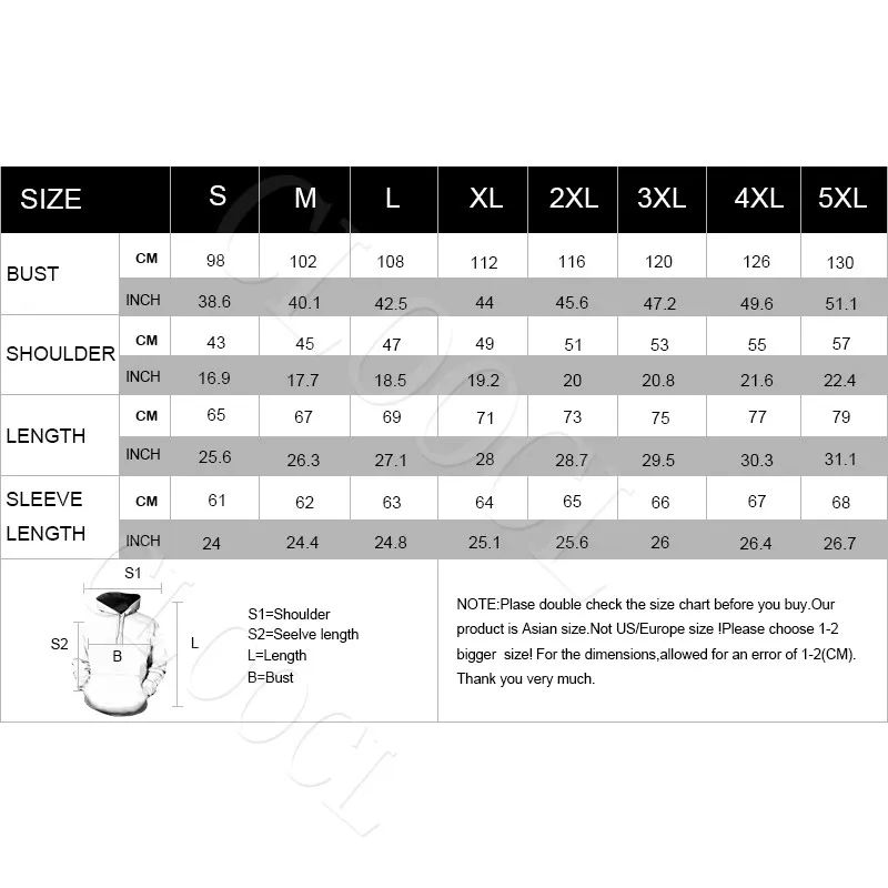 SizeAsian Size S-5XL