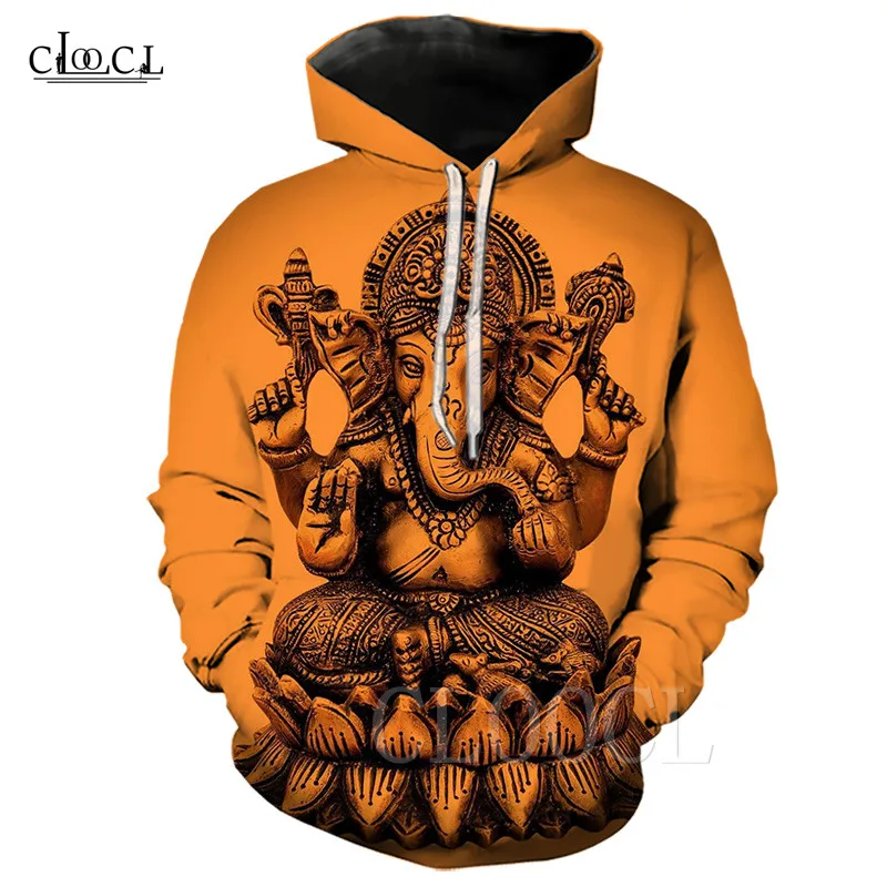 Толстовка с капюшоном Lord Ganesha, худи в стиле хип-хоп, с 3D принтом, с изображением индуистского слона, для мужчин и женщин, осенне-зимняя оранжевая толстовка, уличный стиль, спортивный костюм