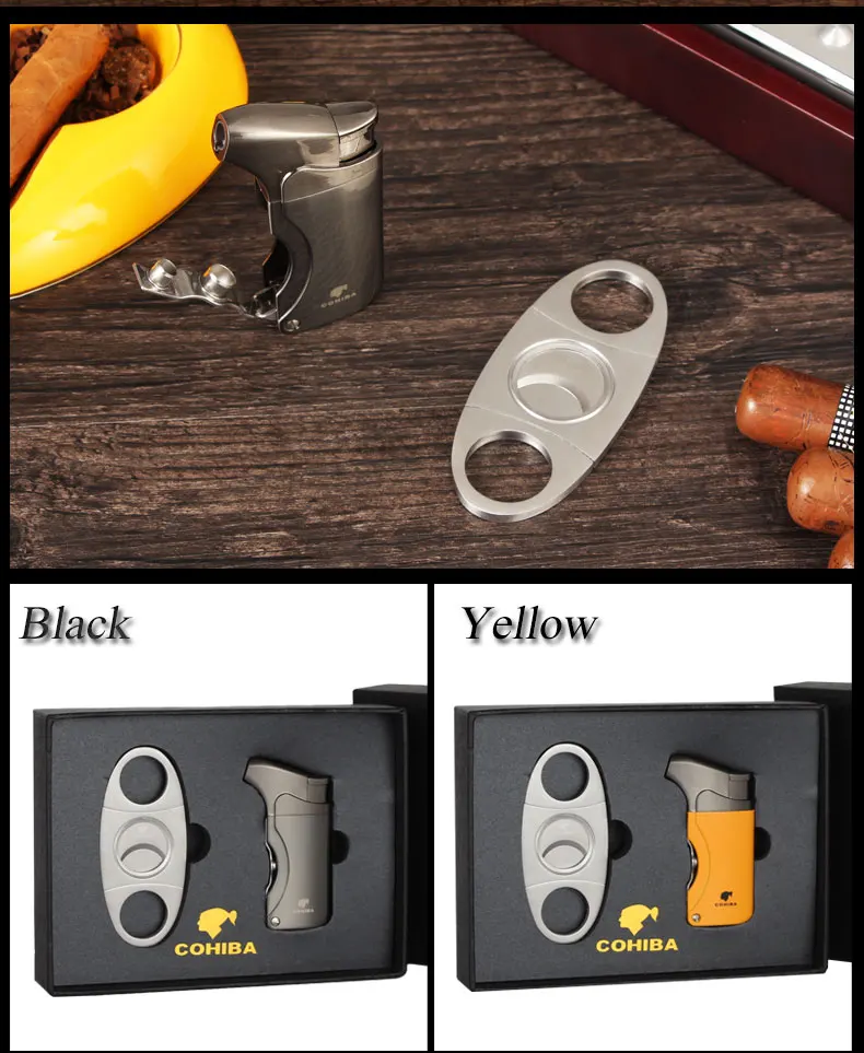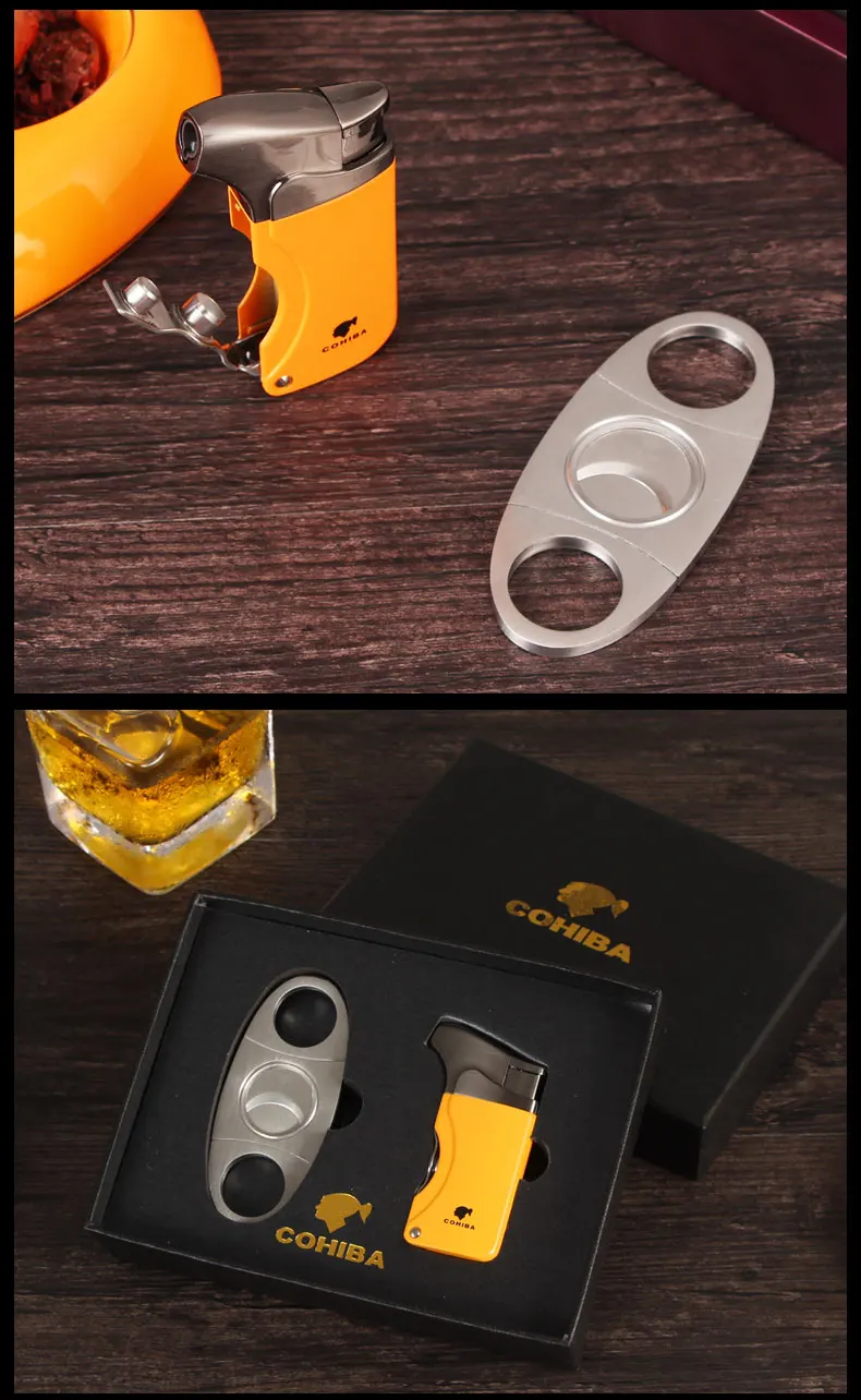 Фонарь COHIBA, мини-карманный Каттер для сигар, гильотина из нержавеющей стали, инструмент для курения, газовая зажигалка