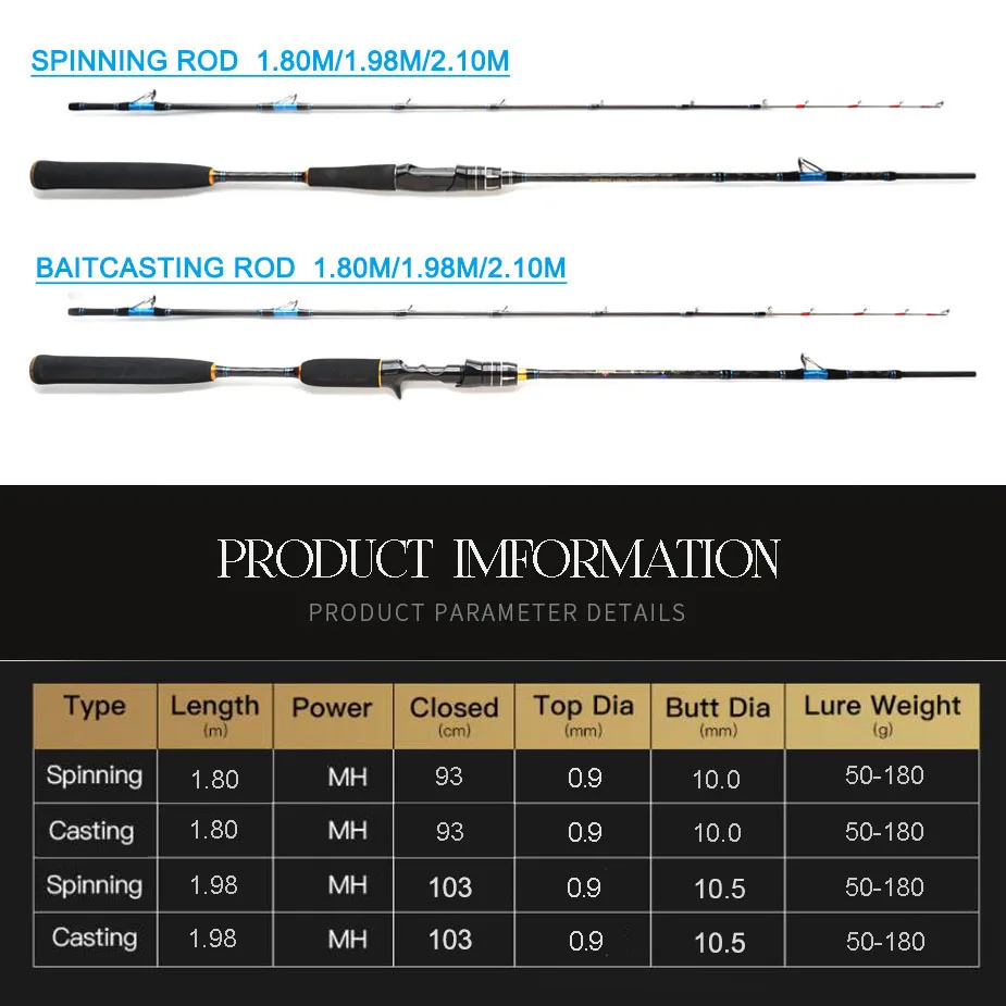 TOMA 1,8 м, 1,98 м, 2,1 м, для морской рыбалки, для приманки, 50-180 г, сверхлегкое удилище для морской рыбалки