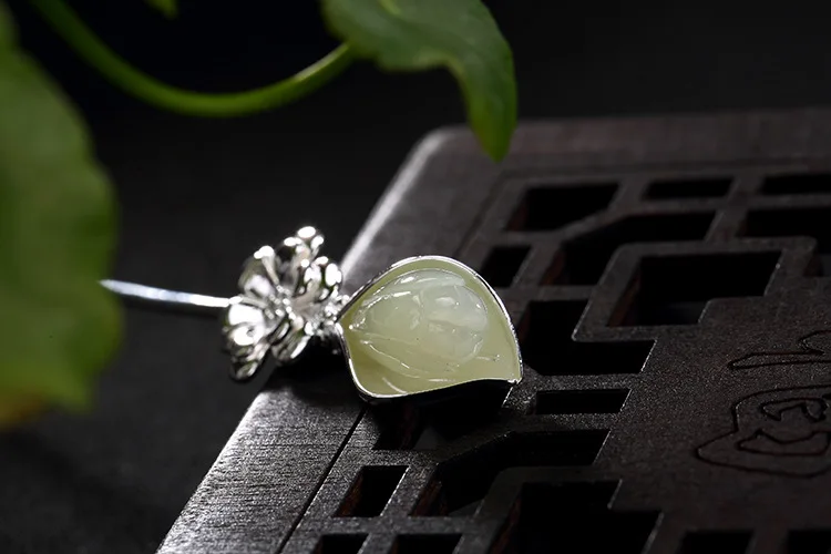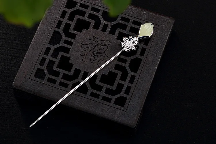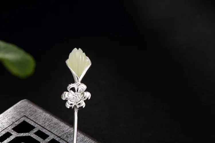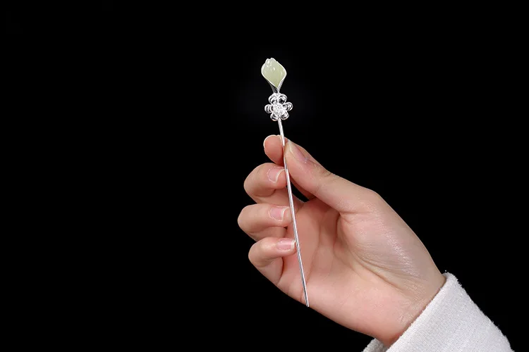 Женские винтажные элегантные вилки для волос без бликов, однотонные тонкие палочки из серебра 925 пробы, украшения для волос с нефритовым цветком, ювелирные изделия