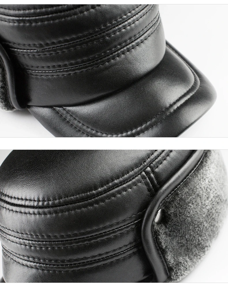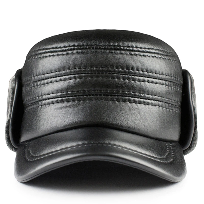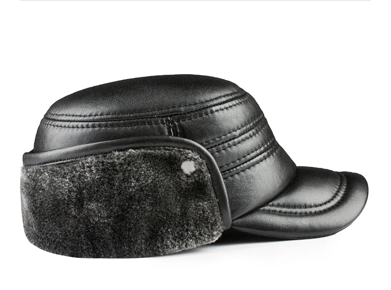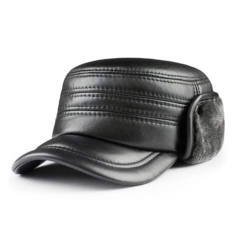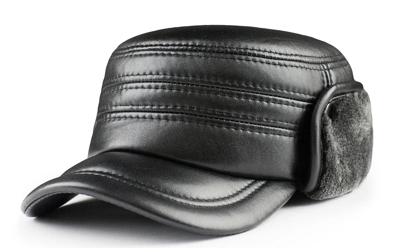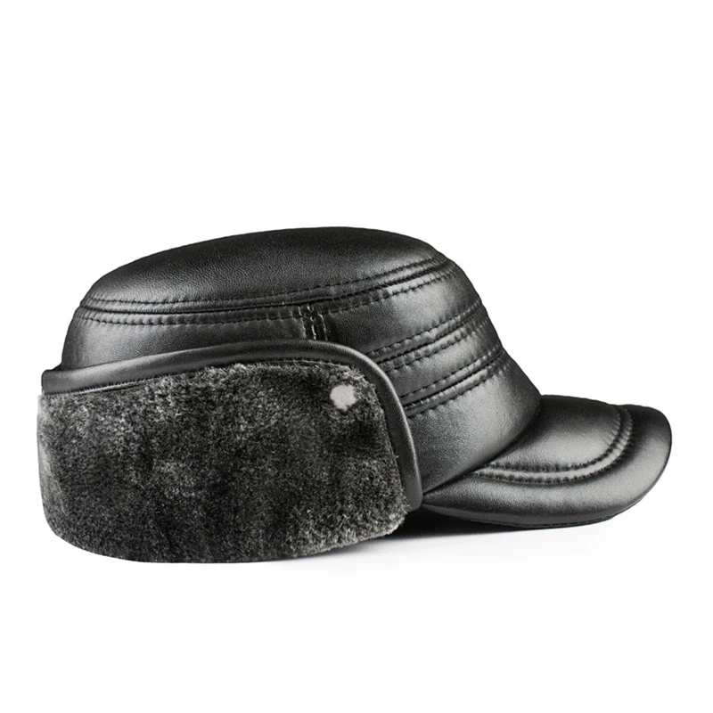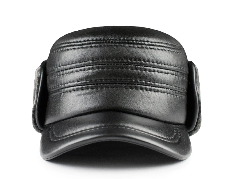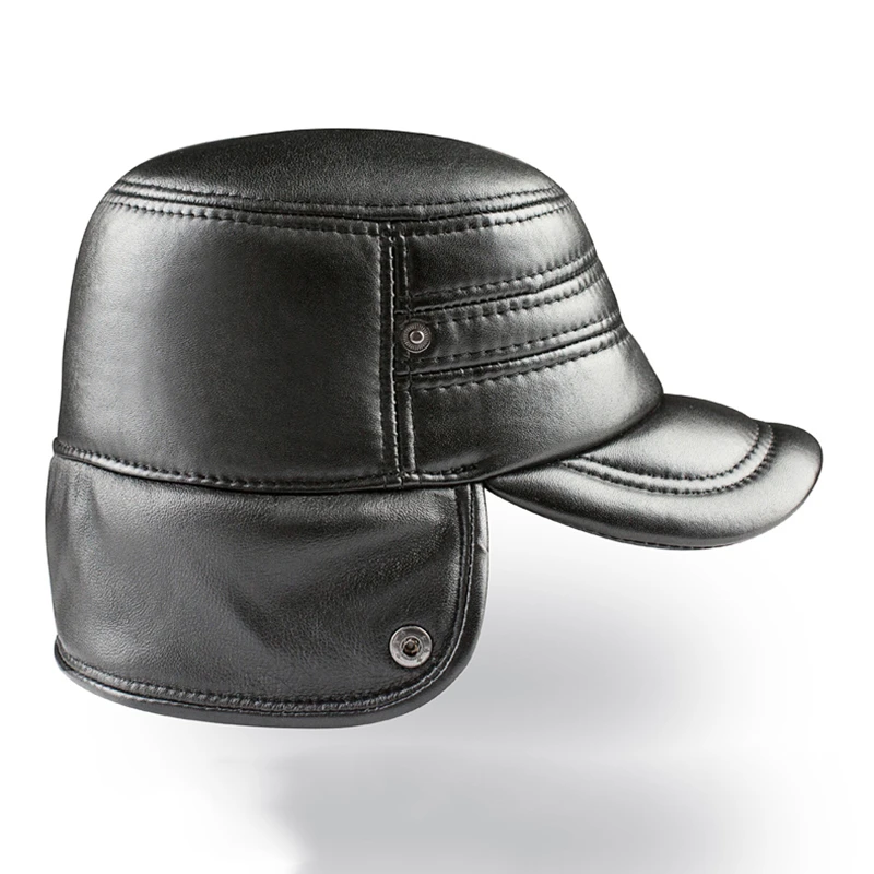 Зимняя плотная теплая шапка с наушниками, шапка из натуральной кожи, мужская шапка из овечьей кожи в стиле милитари, плоская шапка, бархатные шапки для папы
