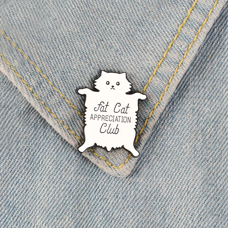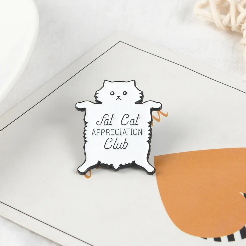 Брошь на лацкан с изображением белого толстого кота, эмалированная ...