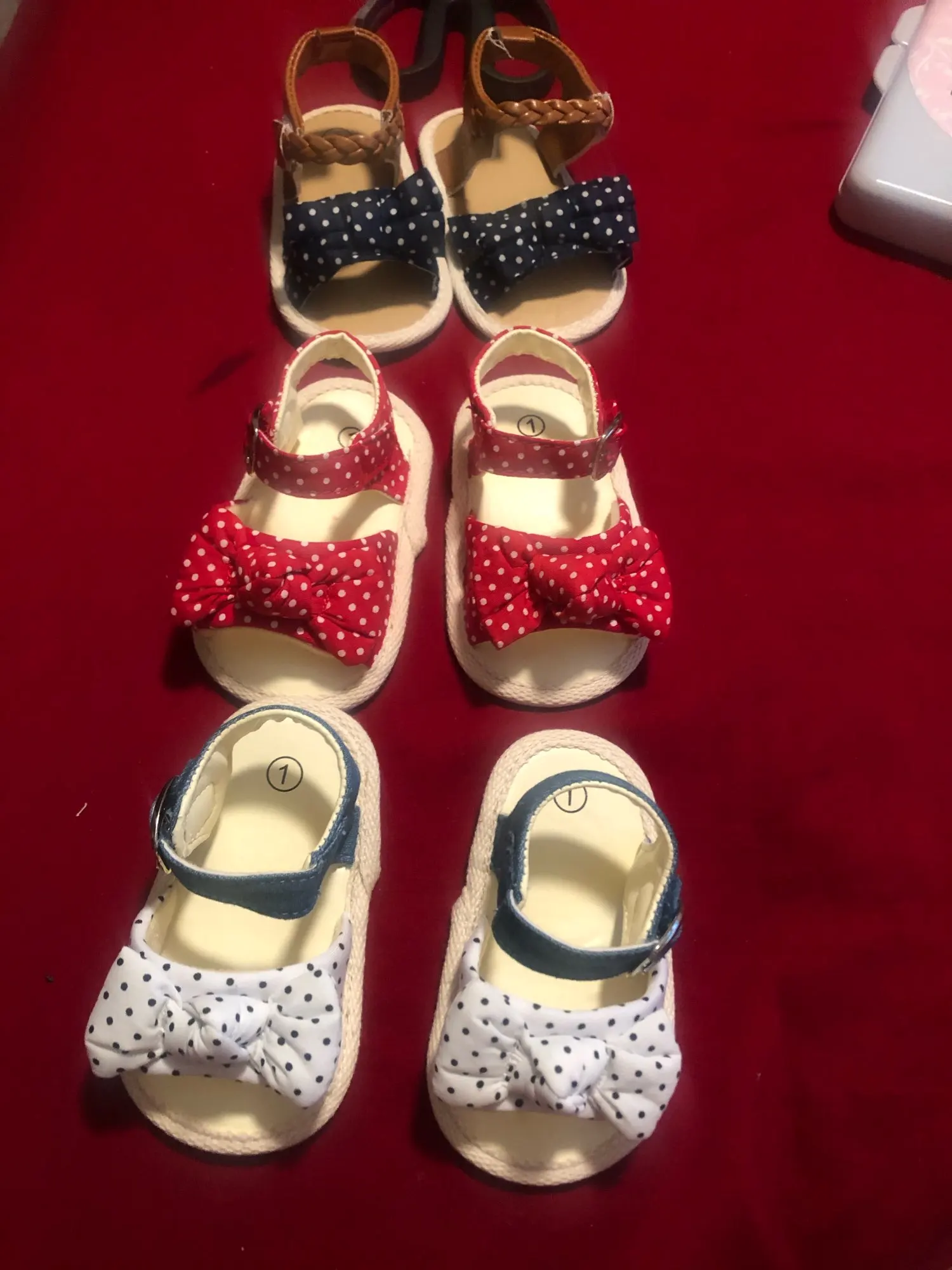 Я заказал дочери Размер 0-3 и они больше, чем я думал. Мы надеемся, что они подойдут к лету, но кроме того, это очень красивая обувь.