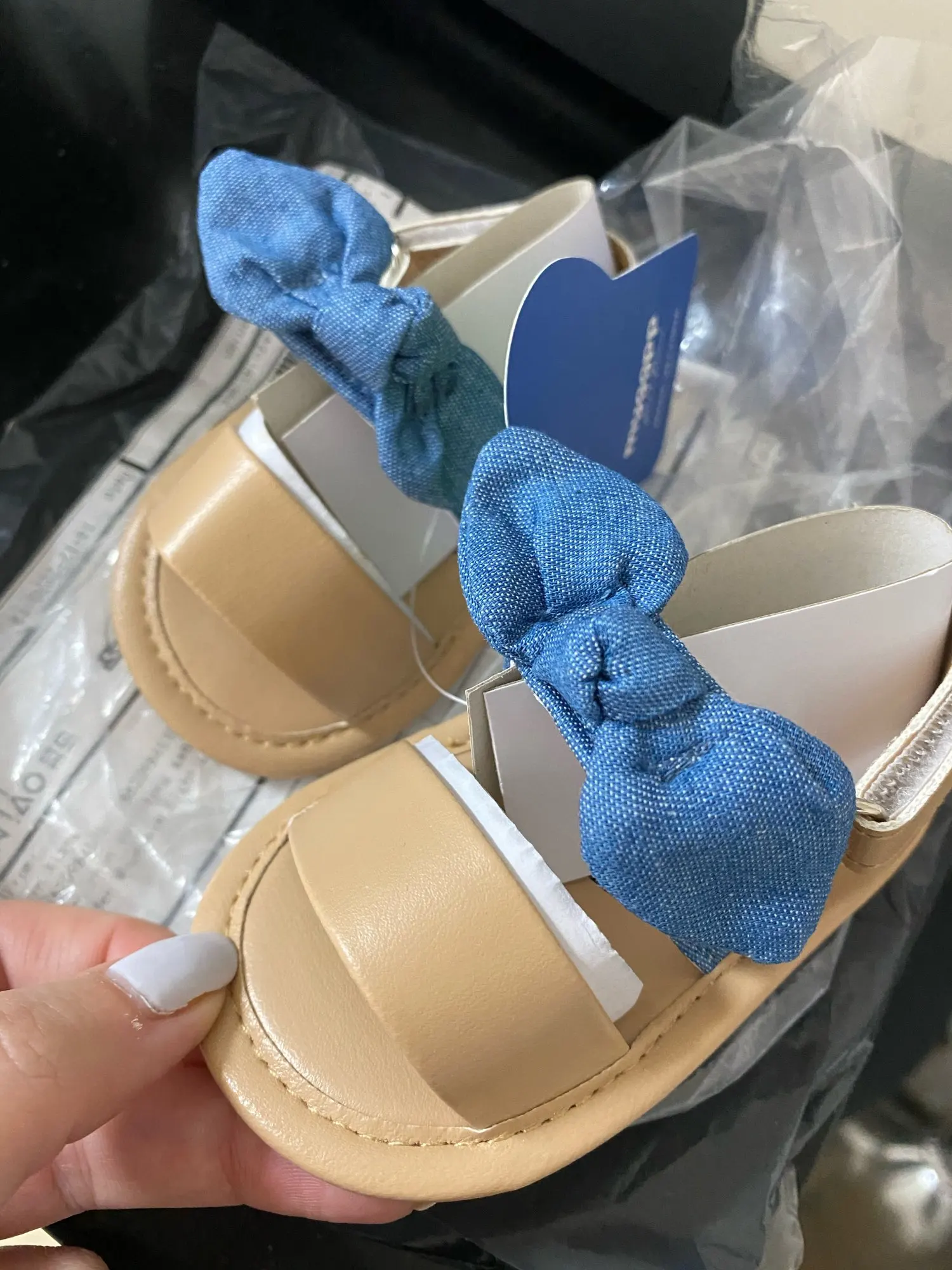 Сандали прикольные, выглядят стильно, разочаровало только то, что подошва мягкая, на улице не походишь, но для дома или коляски в самый раз. Доставка быстрая, до Саратова пару недель. По размеру подошли.