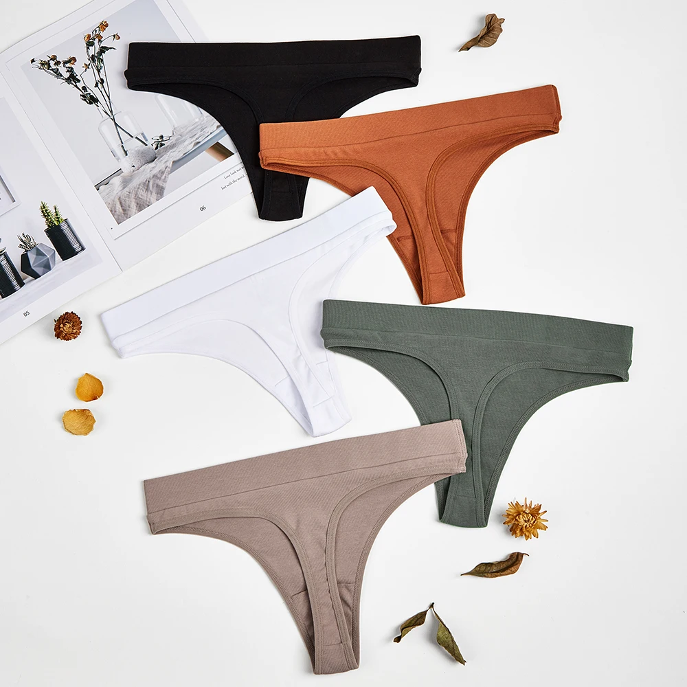 Трусы-стринги женские хлопковые с низкой посадкой, нижнее белье Танга