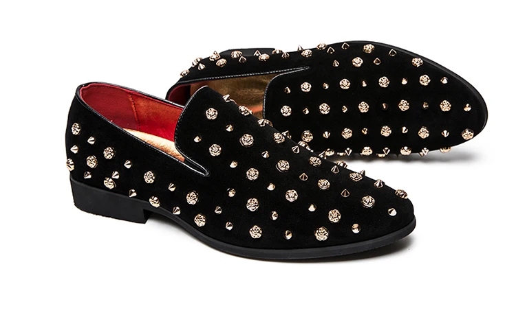 Бесплатная доставка мужские лоферы со стразами обувь с заклепками Модные женские Балетки без шнуровки пикантные туфли с заклепками вечерние Туфли под платье 2020 Роскошные Дизайнерские мужские туфли