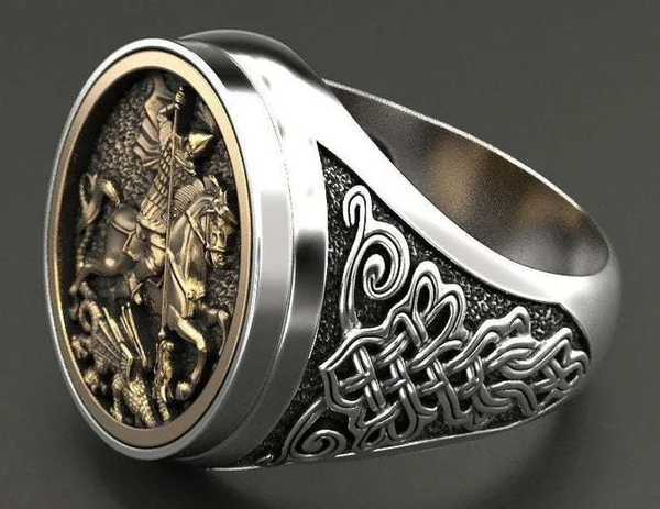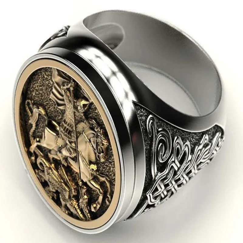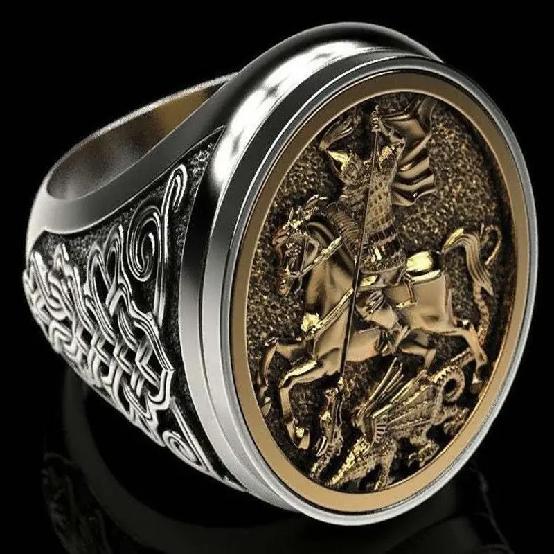 Винтажные готические уникальные мужские кольца Святого Георгия Портретные двухцветные кольца Римского солдата дракона мужские ювелирные изделия для подростков