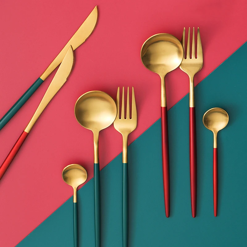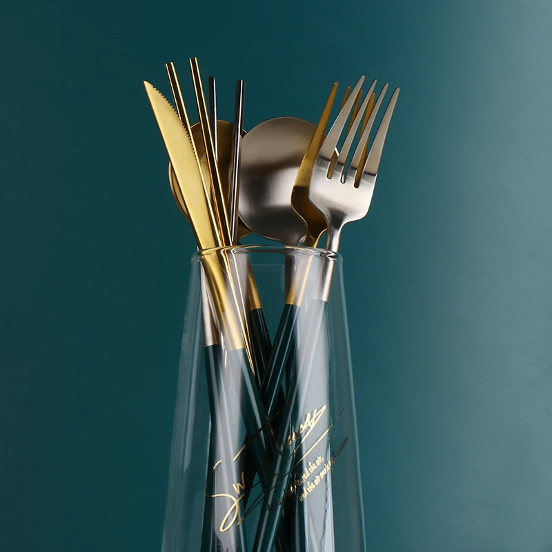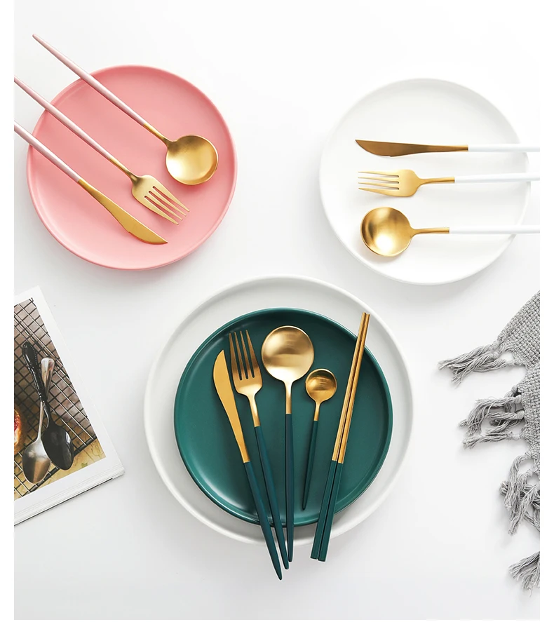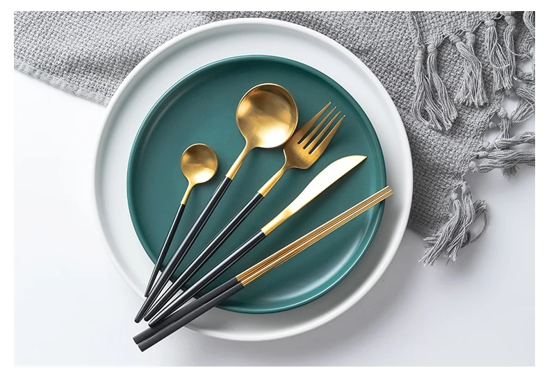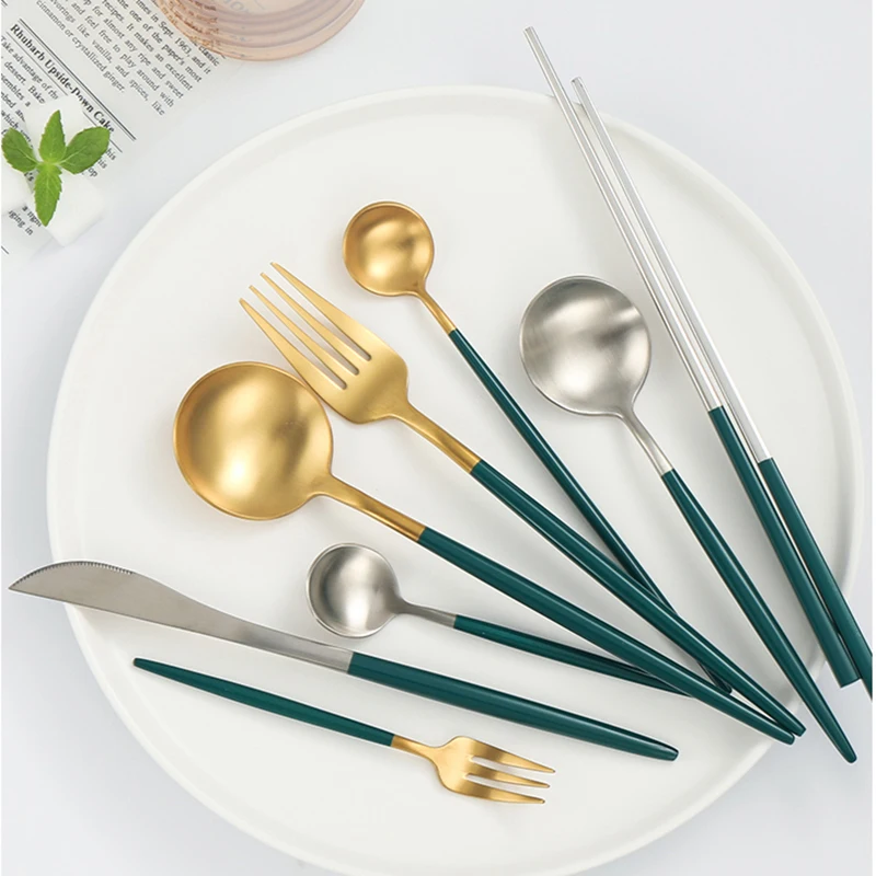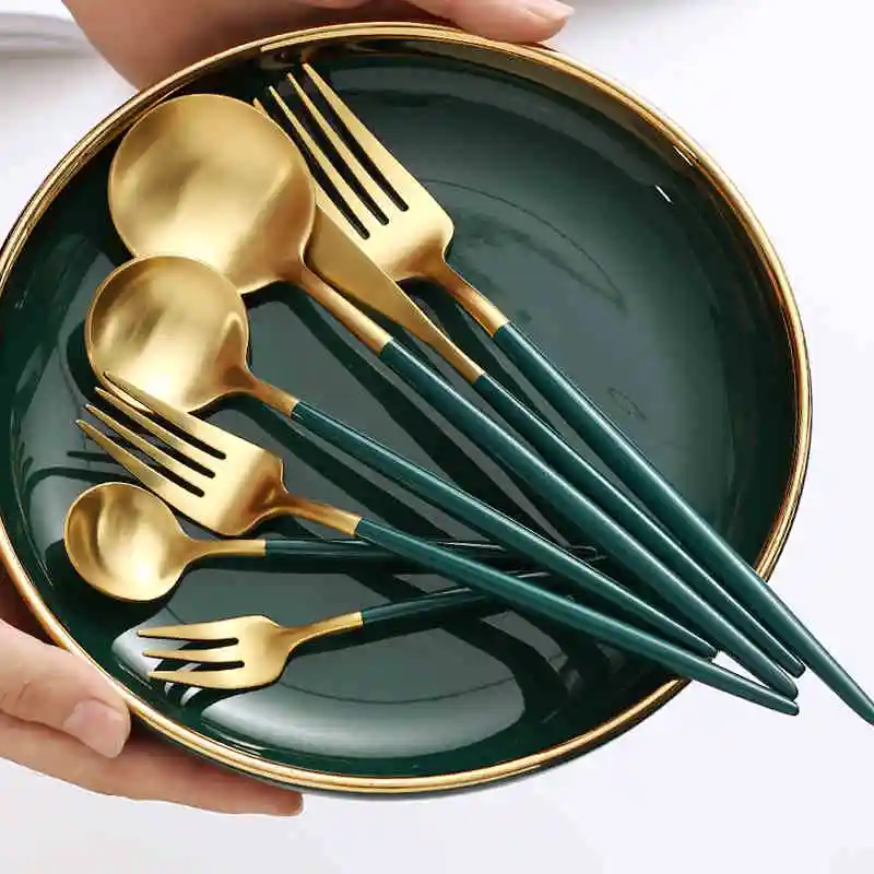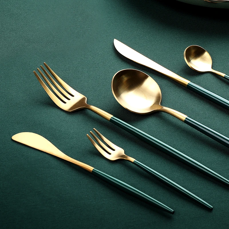 Высокое качество матовый 1810 темно-зеленый черный золотой серебристый белый розовый нержавеющая сталь посуда в западном стиле нож суповая ложка торт вилка палочки для еды набор безопасности для посудомоечной машины