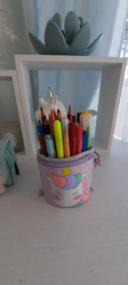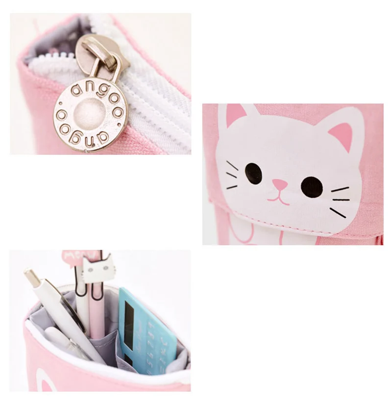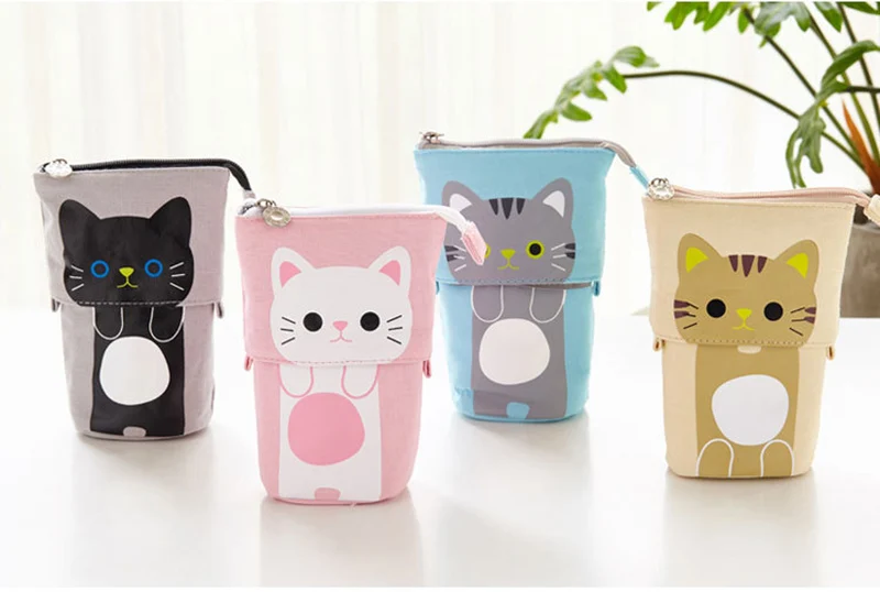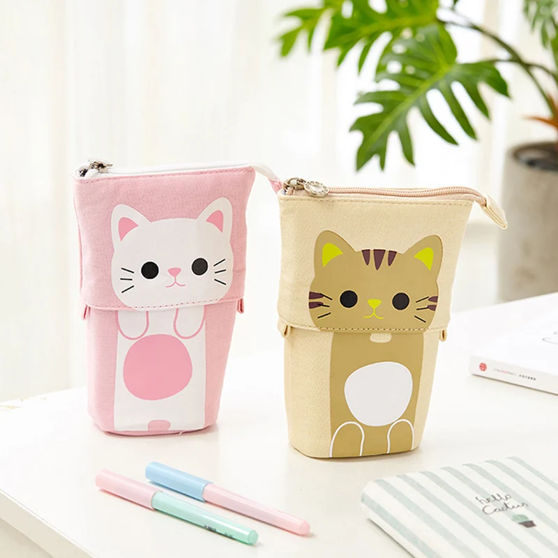 Чехол-книжка для карандашей, с изображением кошки, для девочек и мальчиков, Холщовый, с картриджами, кавайный, флеш-накопитель в виде единорога шт.