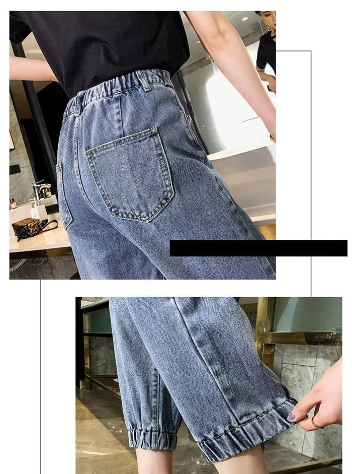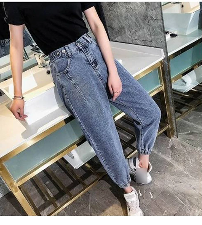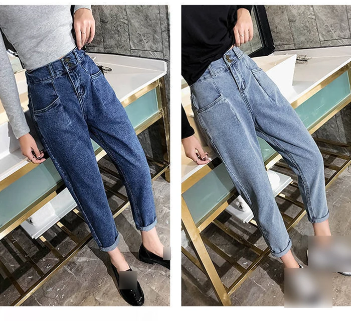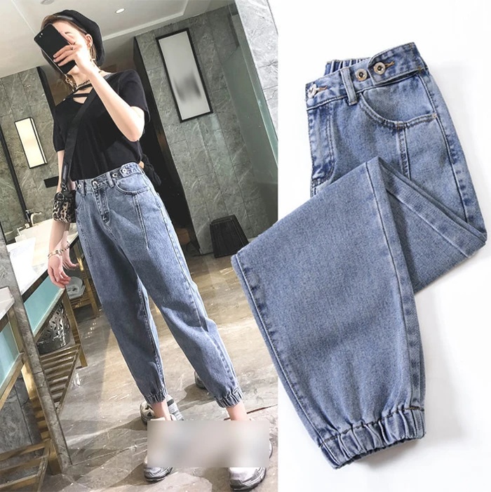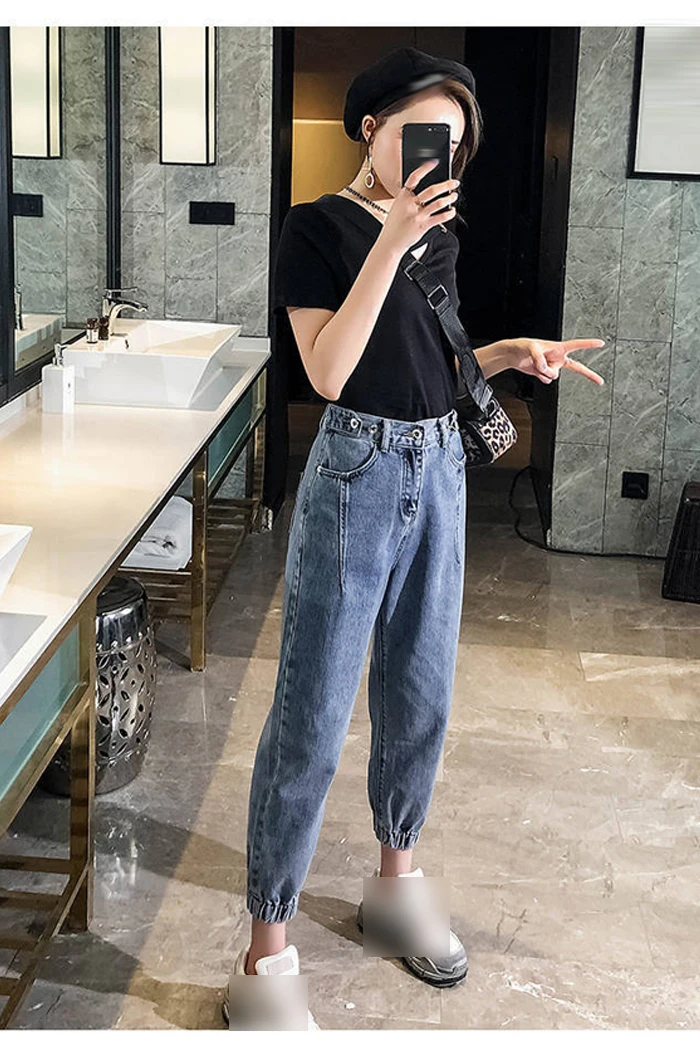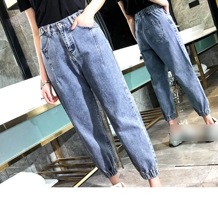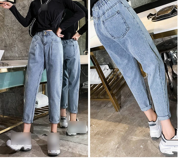 Корейские джинсы, женские брюки бойфренда, выше размера, с высокой талией, эластичные, свободные, повседневные, размера плюс, уличная одежда, джинсы, женские брюки