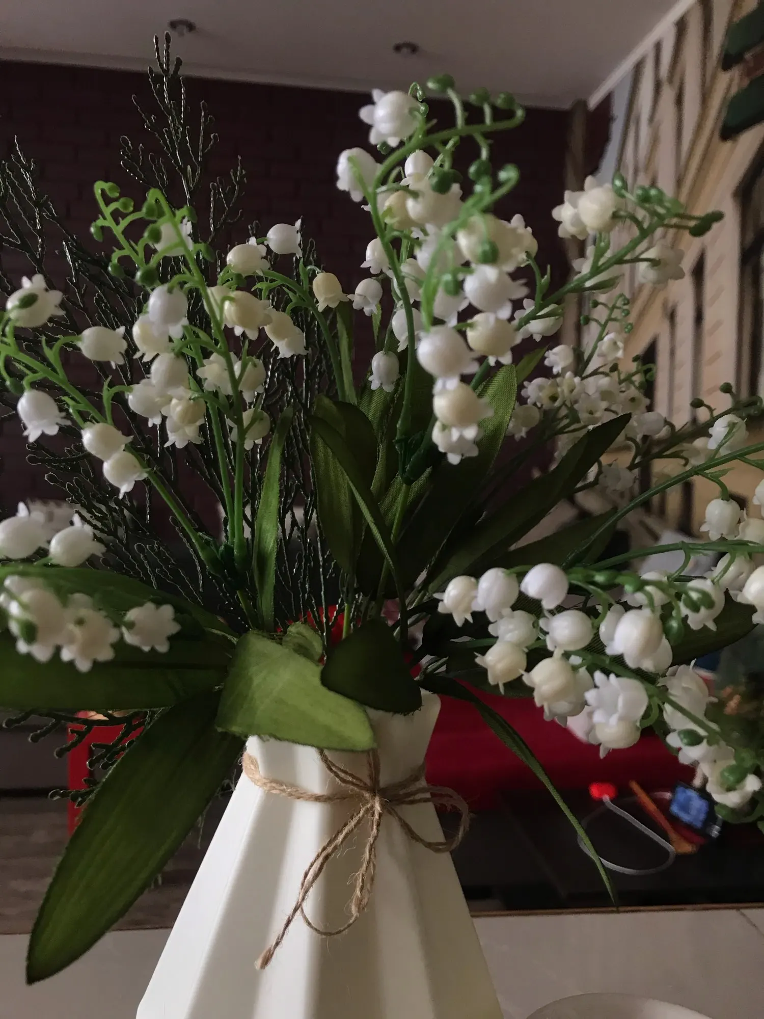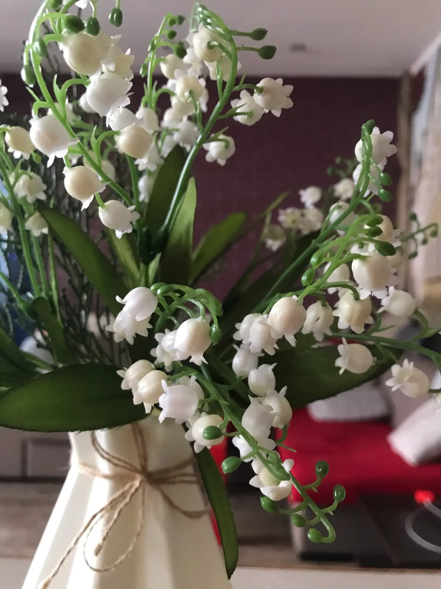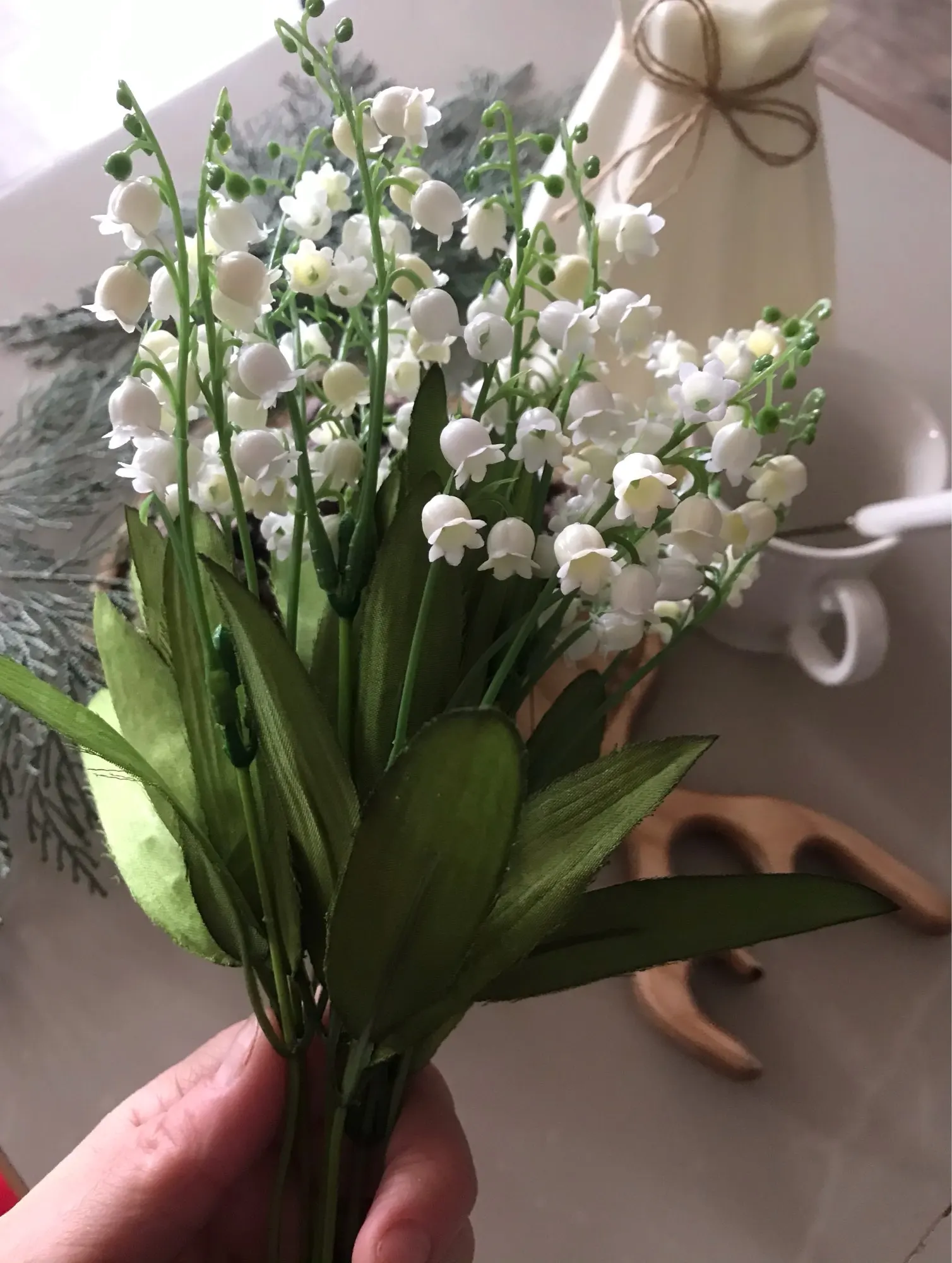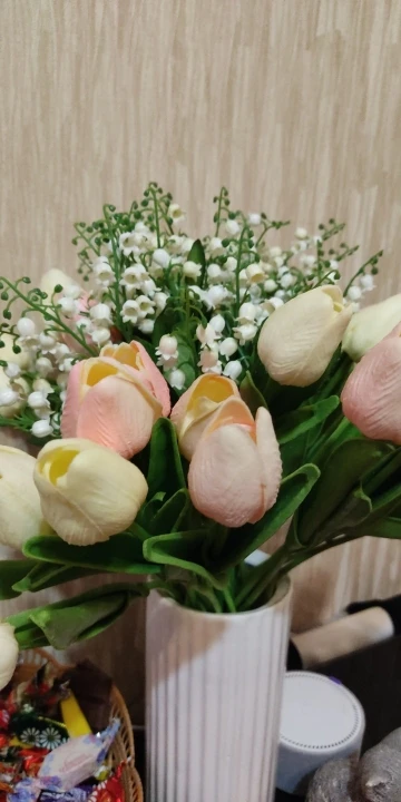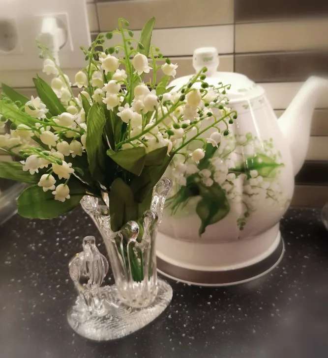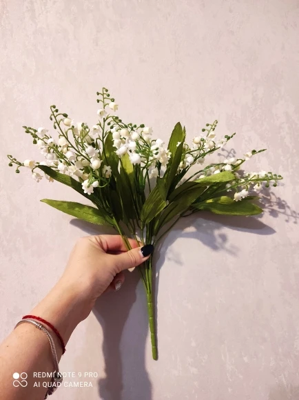 Так как я люблю фотографировать и люблю чтобы фотографии были красивыми, решила для декора заказать искусственные цветы. Заказывала в белом цвете, выглядят как настоящие. Материал: шелковая ткань + пластик. Высота ландышей около 38 см. Качество изготовления ландышей хорошее. Заказом довольная, Рекомендую
