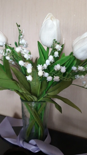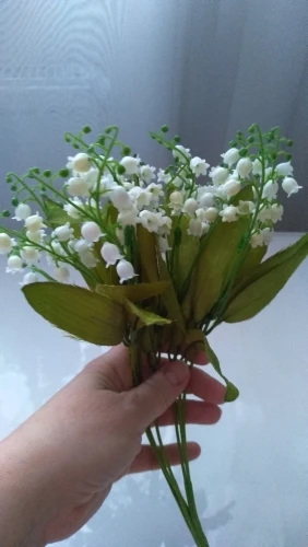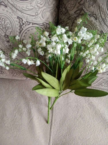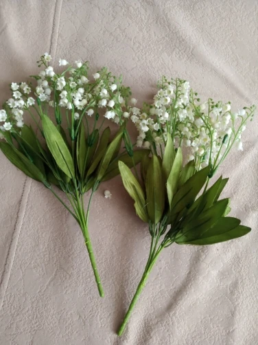 Ландыши красивые, реалистичные. Но для букета заказывайте не оду, а 3-4 веточки. Одна не так пышно смотрится. А в целом красивые, крупненькие цветочки. Аккуратные. Нет претензий.
