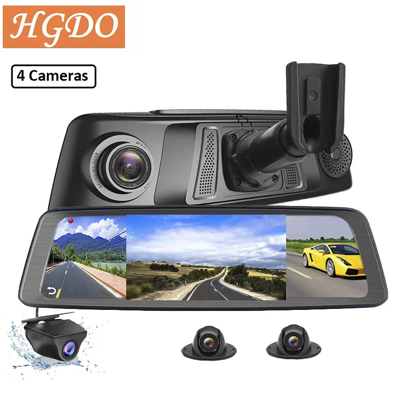 Видеорегистратор с антирадаром HGDO, Автомобильный регистратор с 10 ", 4G, 2 + 32 ГБ, 4-канальный камера в зеркале заднего вида, ADAS, GPS, 2020