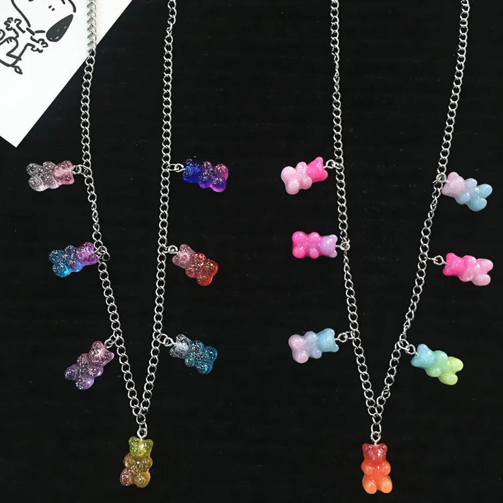 Разноцветное милое желеобразное ожерелье медвежонок, ожерелье в стиле хип-хоп, мужские и женские повседневные ювелирные изделия, праздничные аксессуары на подарок