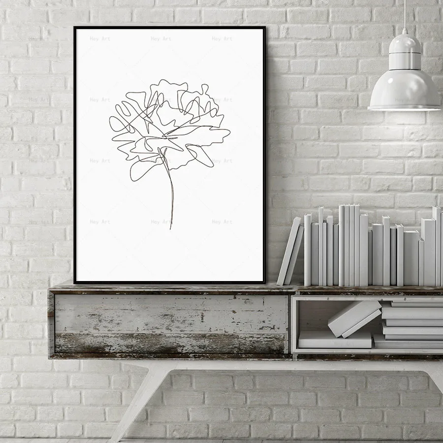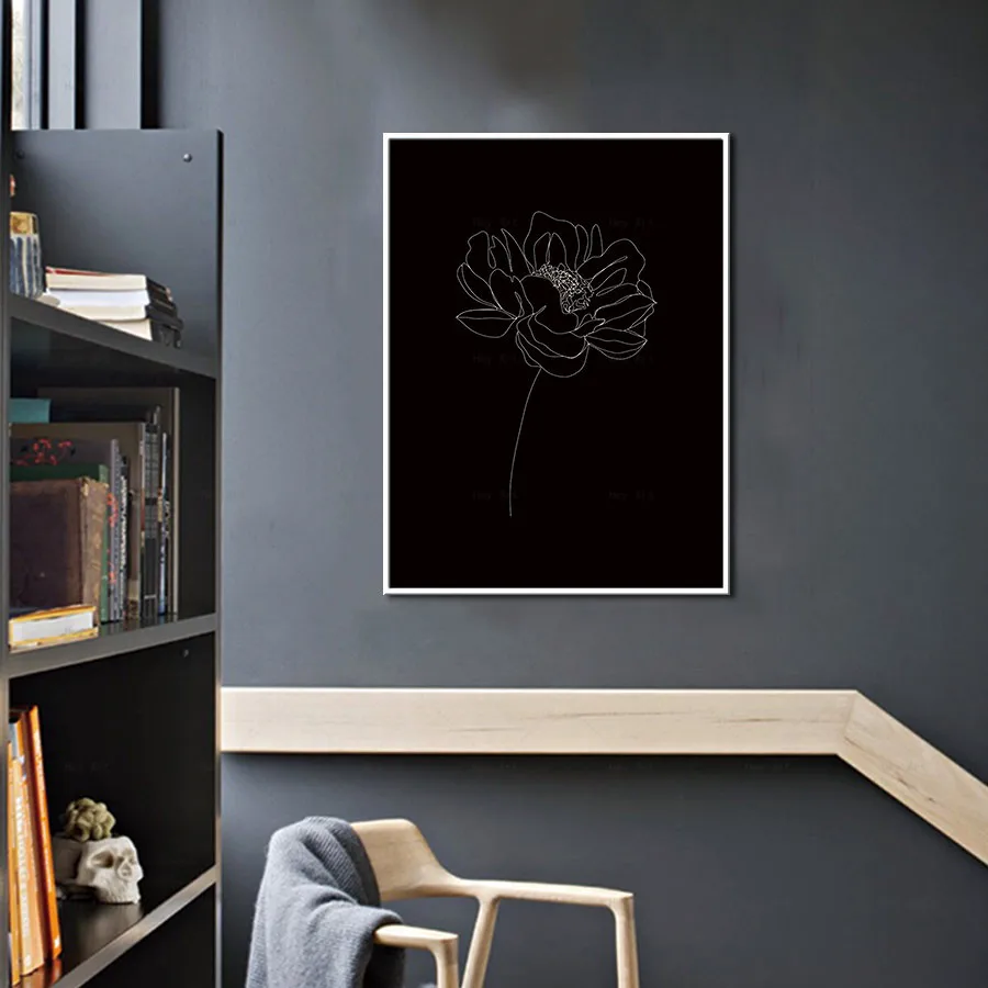 Настенные художественные плакаты в скандинавском стиле, черные, Белые пионы, цветы, растения, живопись на холсте, минималистичный рисунок по линии, украшение для спальни и дома