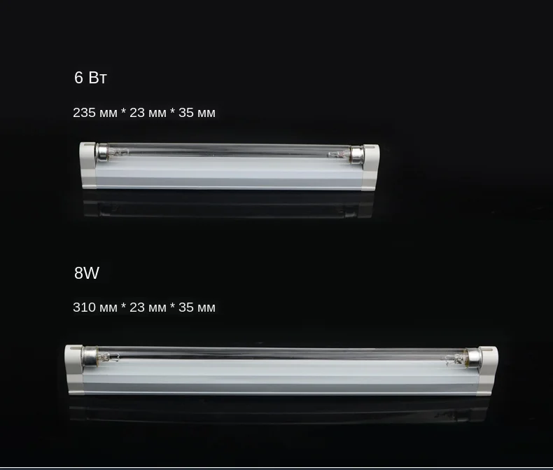 Тип: УФ бактерицидная дезинфекционная лампа Цвет излучения: голубовато-фиолетовый Материал кронштейна: алюминиевый кронштейн Напряжение: 110 В/220 В Мощность: 6 Вт/8 Вт Тип лампы: T5 (G5) Тип стеклянной лампы: круглая трубка Длина: прибл. 235 (мм)/310 (мм) Область дезинфекции: 6 Вт <= 9м ² ; 8 Вт <= 12м ² Предполагаемый период: 1-3 раза в неделю Предполагаемое время стерилизации: 30-60 минут один раз