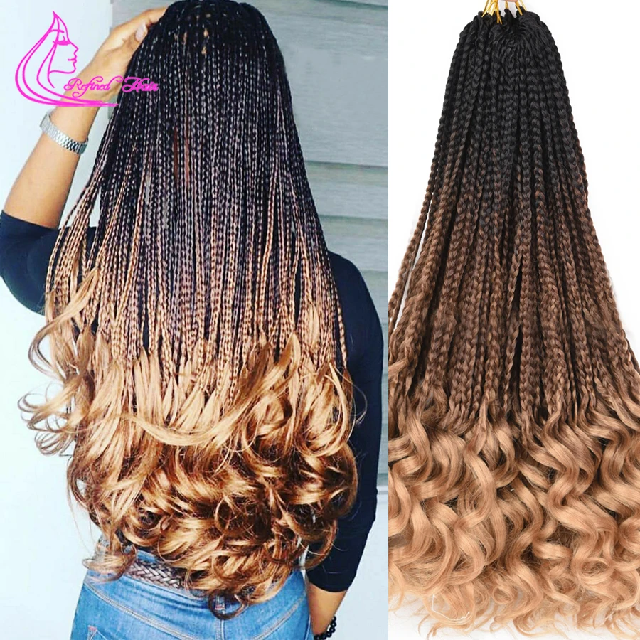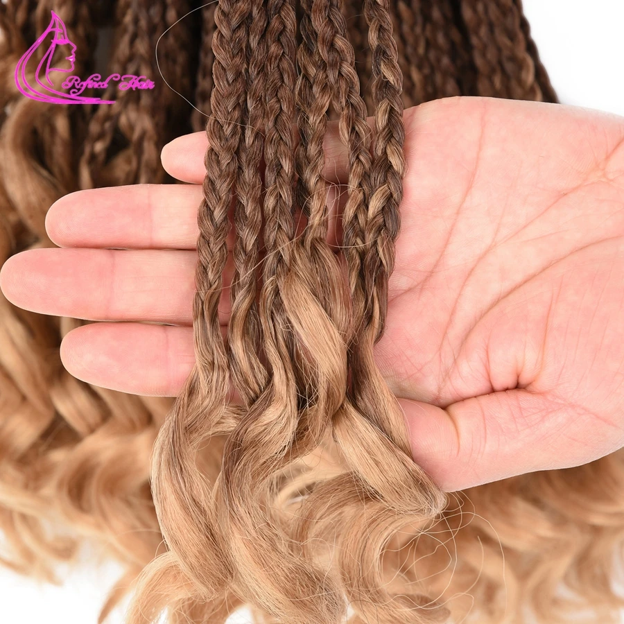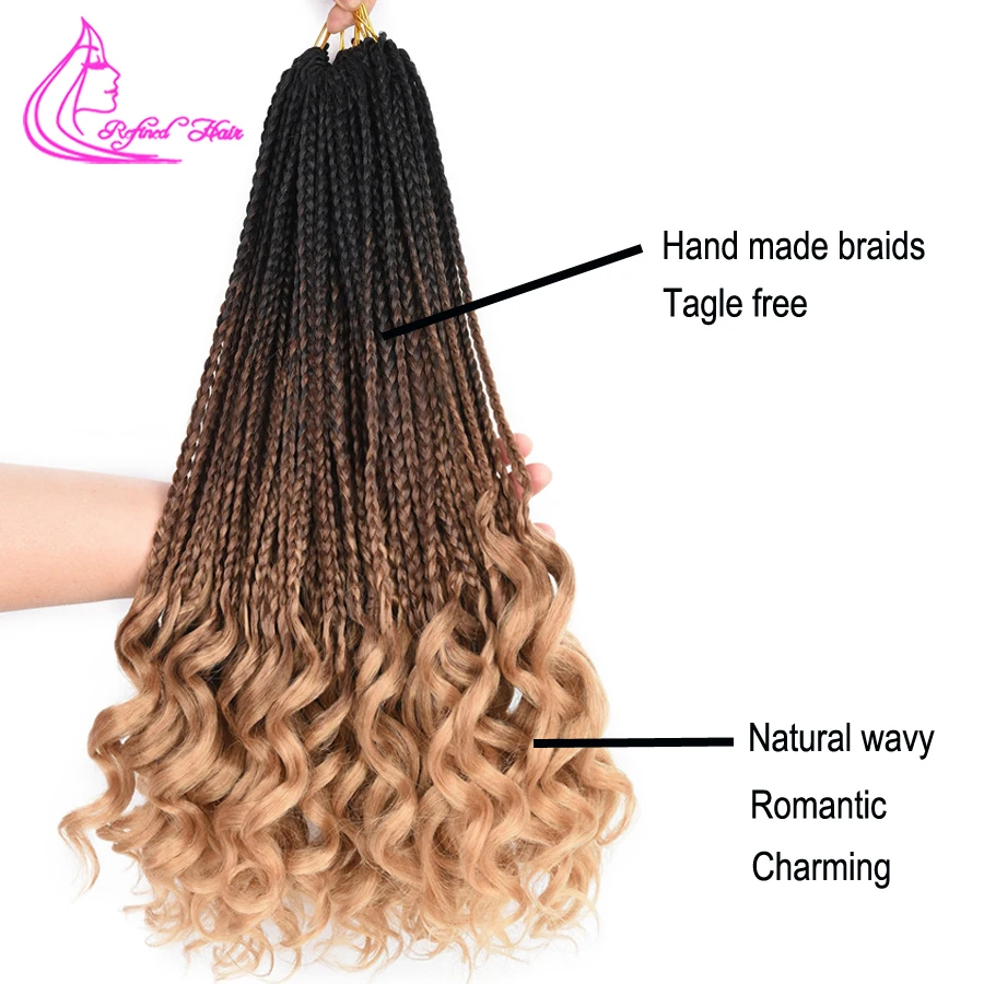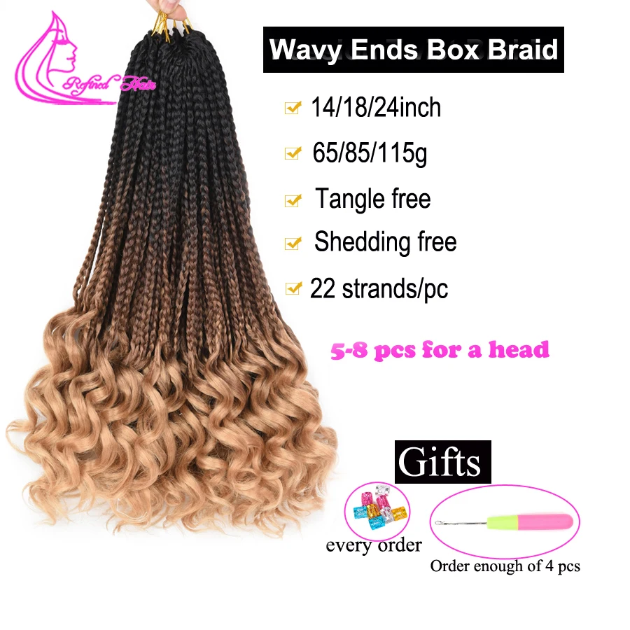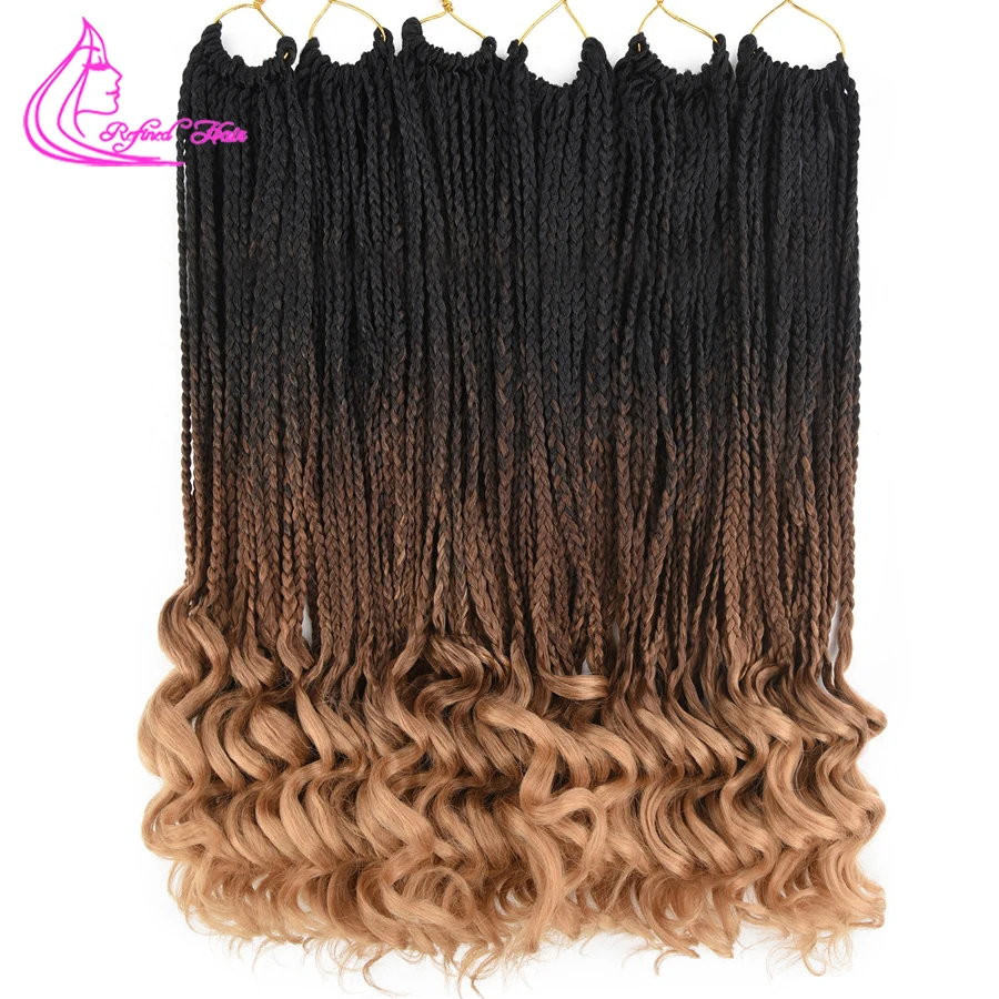 Рафинированный Уход за волосами богиня коробка Косы с крючком вьющиеся заканчивается синтетические косички, волосы для наращивания 22 волосы Virgin Hair (pc эффектом деграде (переход от темного к чёрный; коричневый красный