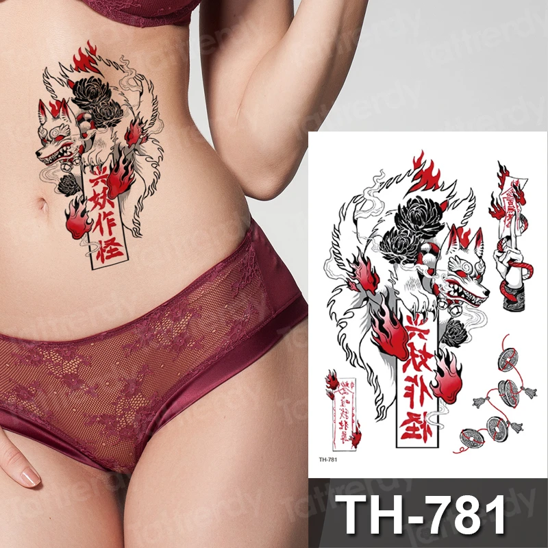 Женские временные тату-наклейки на тело с изображением пожарной лисы, животных, дракона, Феникса, Скорпиона, сексуальные татуировки для женщин и девочек, наклейка на голову