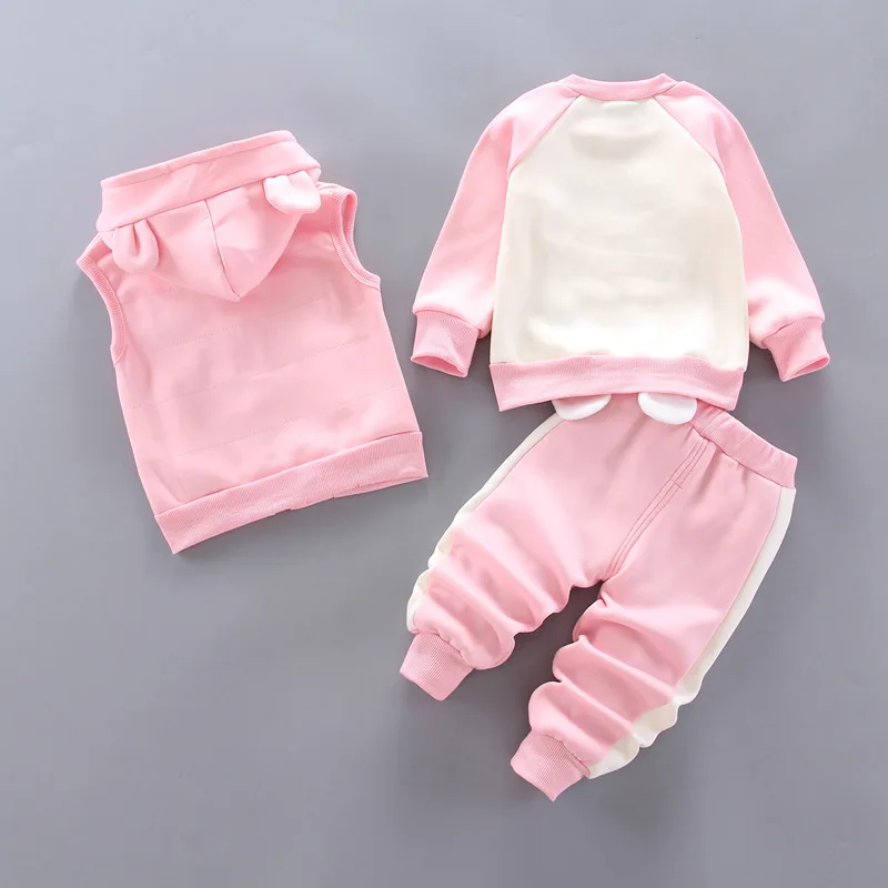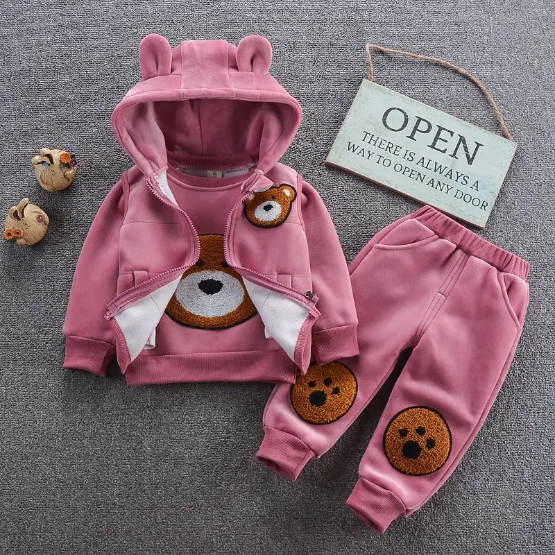 Комплект одежды для маленьких мальчиков, зимний теплый свитер с золотистым вельветовым принтом в виде пчелы, Толстый жилет с капюшоном для маленьких девочек, комплект из 3 предметов