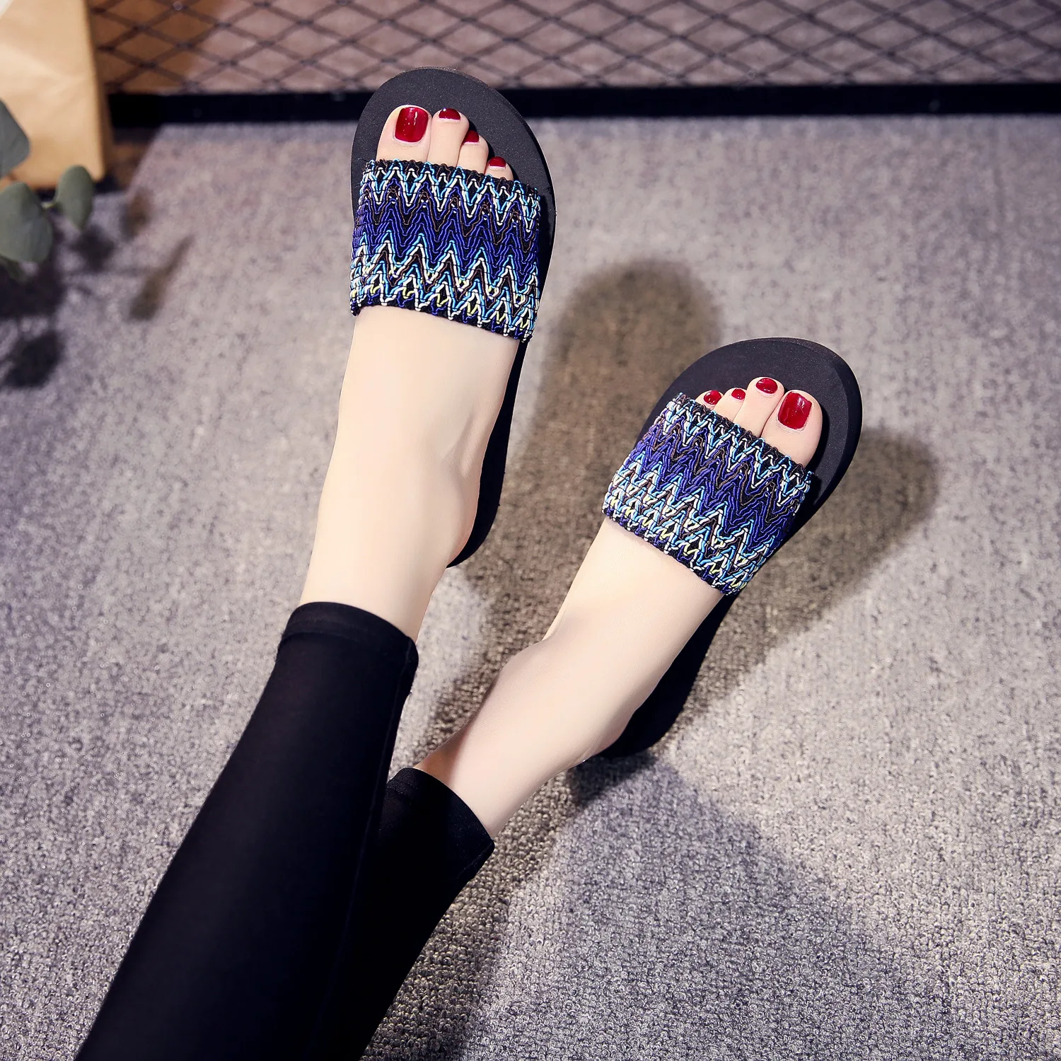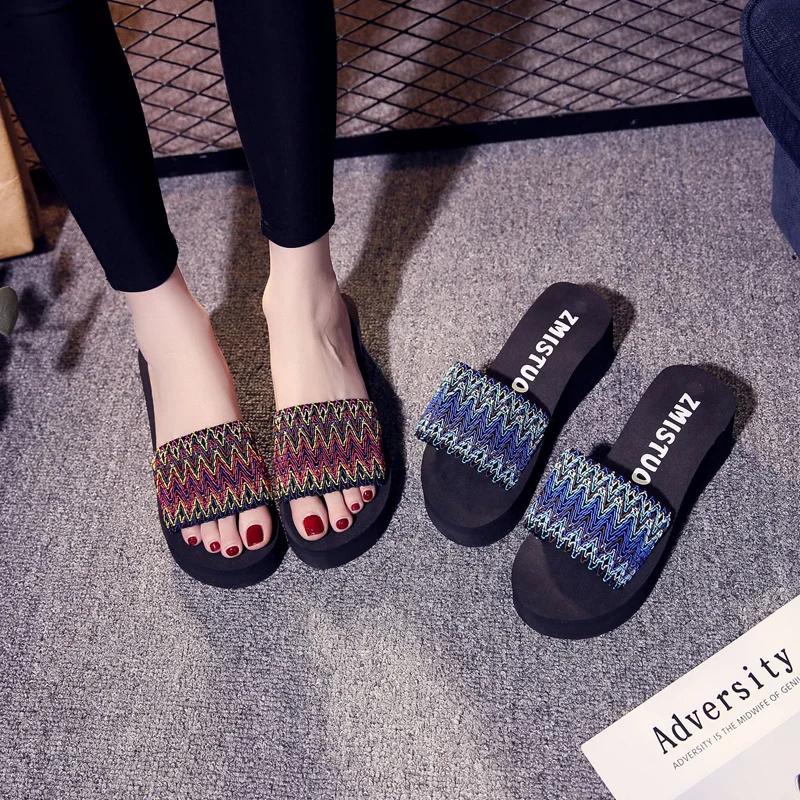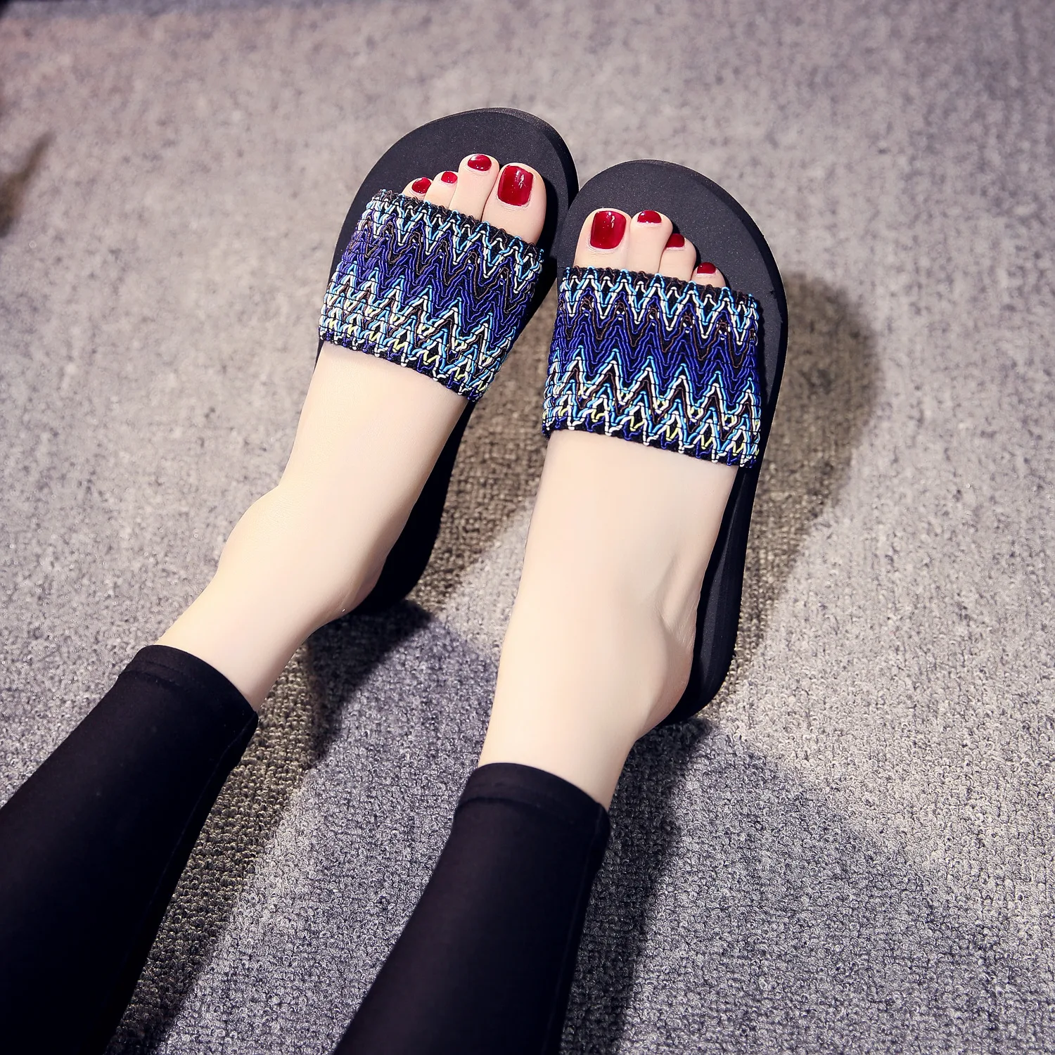 Женские шлепанцы, пляжные сандалии в богемном стиле, шлепанцы в син...
