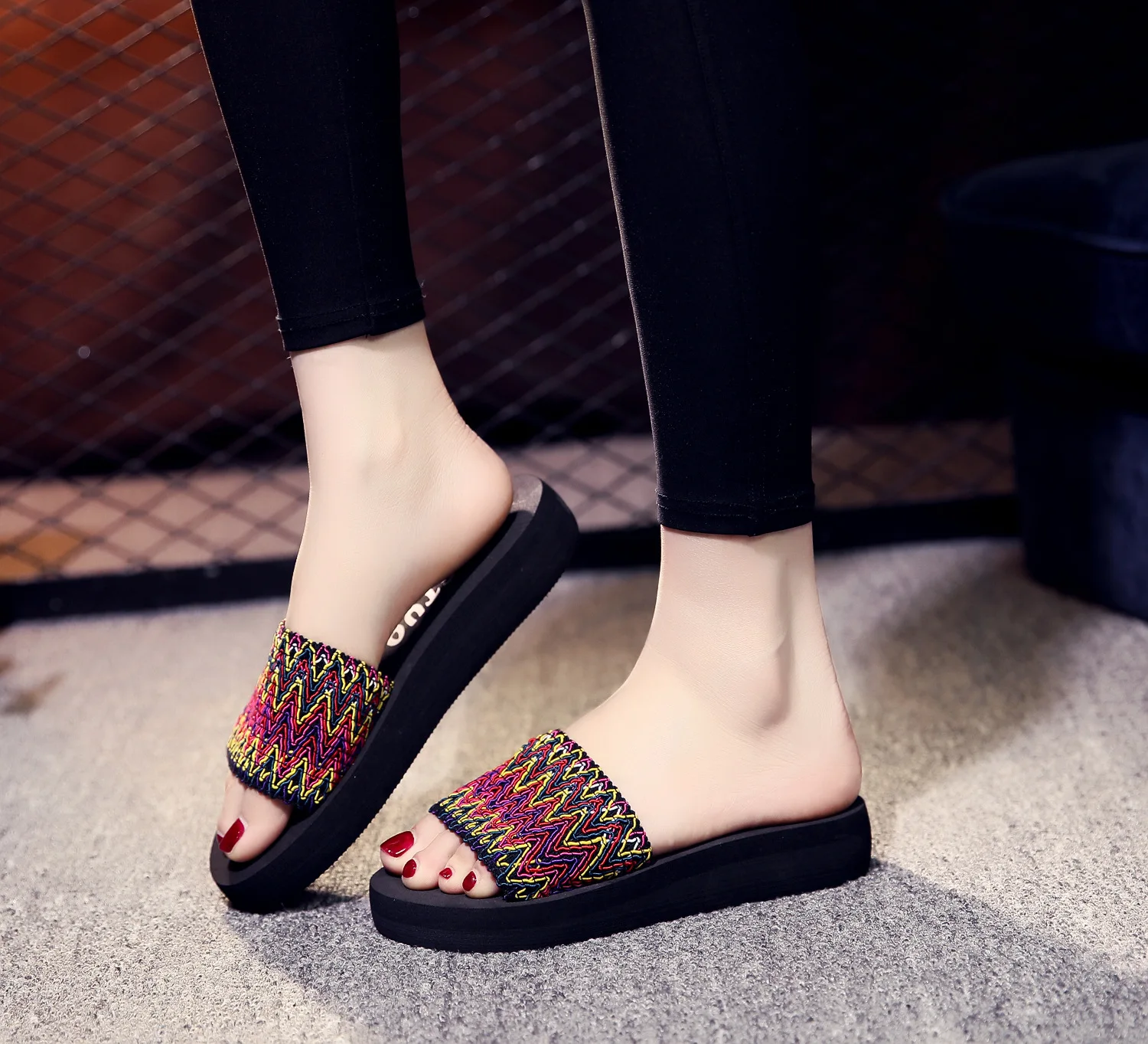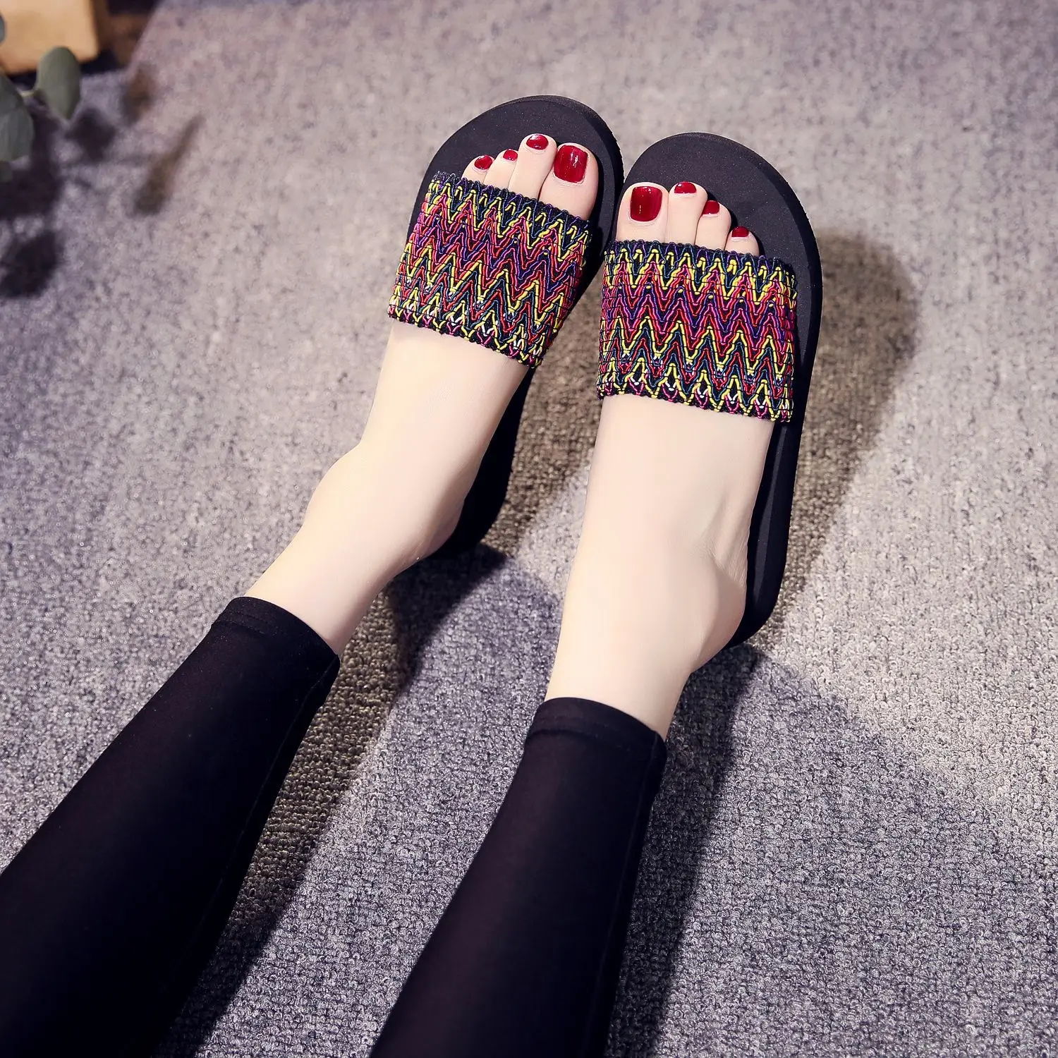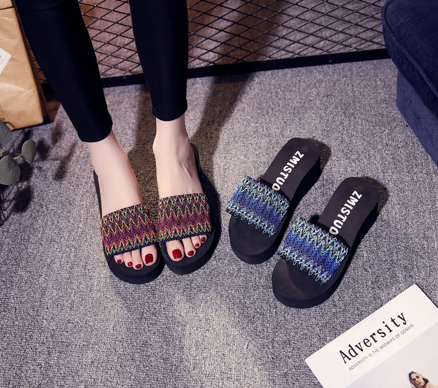 Женские шлепанцы, пляжные сандалии в богемном стиле, шлепанцы в син...