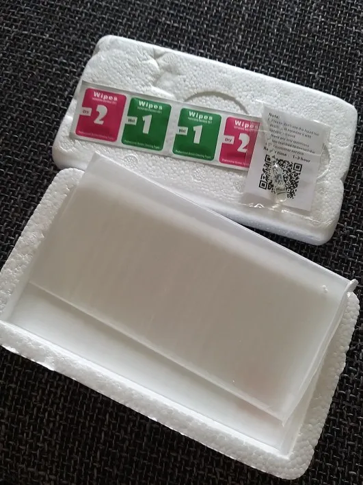 В Германию пришло за две недели. Жалко, что в комплекте нет скребка, что б разровнять. Я брала свой, потому что как в видео, сам он не приклеивается) плюс - салфетки влажные, все ок. Тк иногда с али приходили уже высохшие. Не большой минус, брала для note 4, там есть изгибы на экране, и именно это стекло на них заходит, поэтому по краям не приклеится. В остальном все супер. Как будет в использовании посмотрю, дополню.
