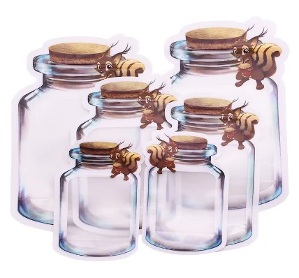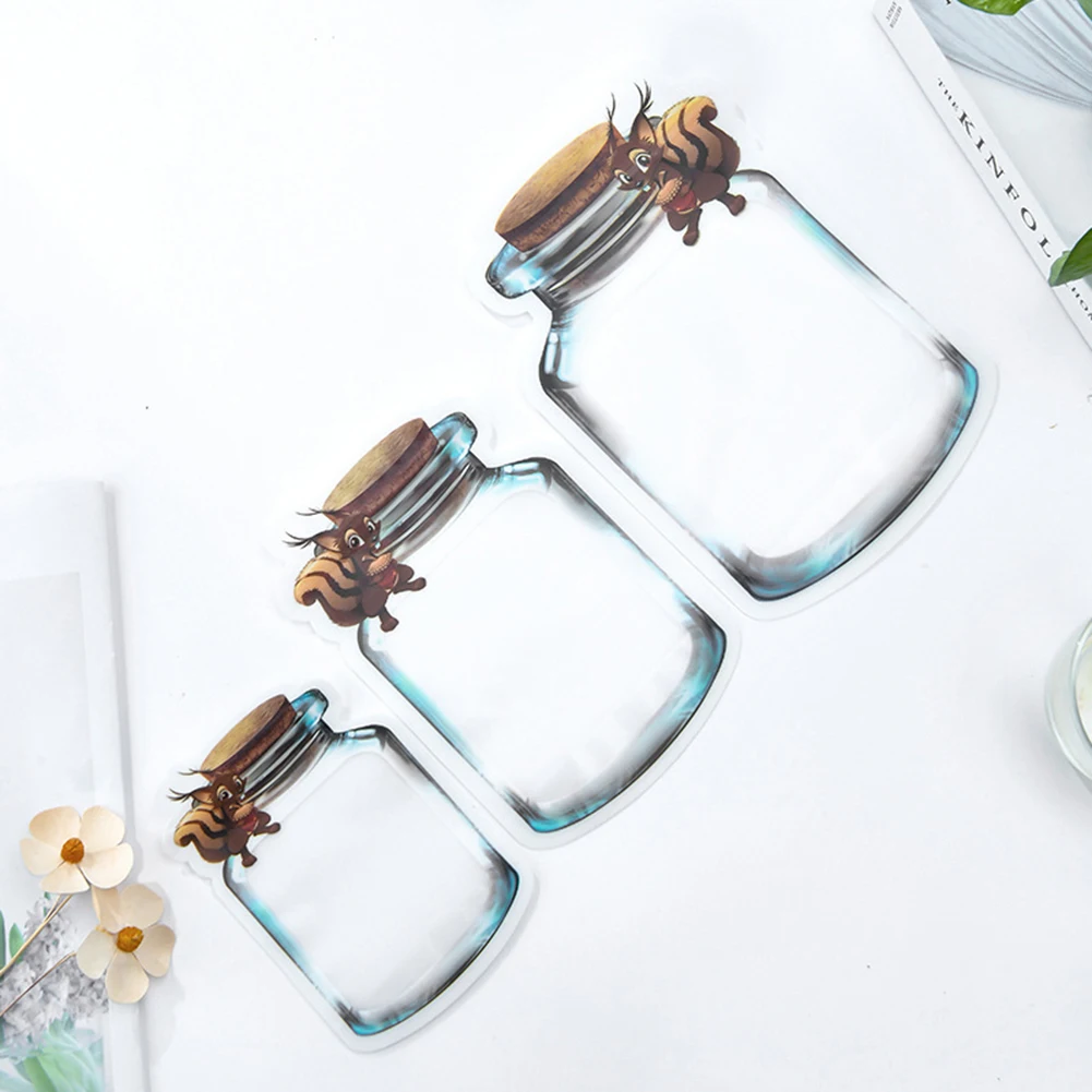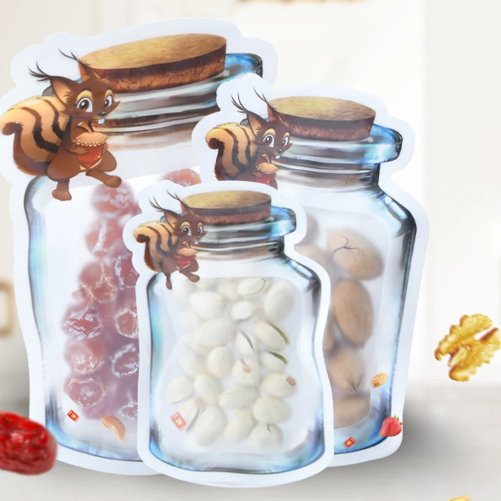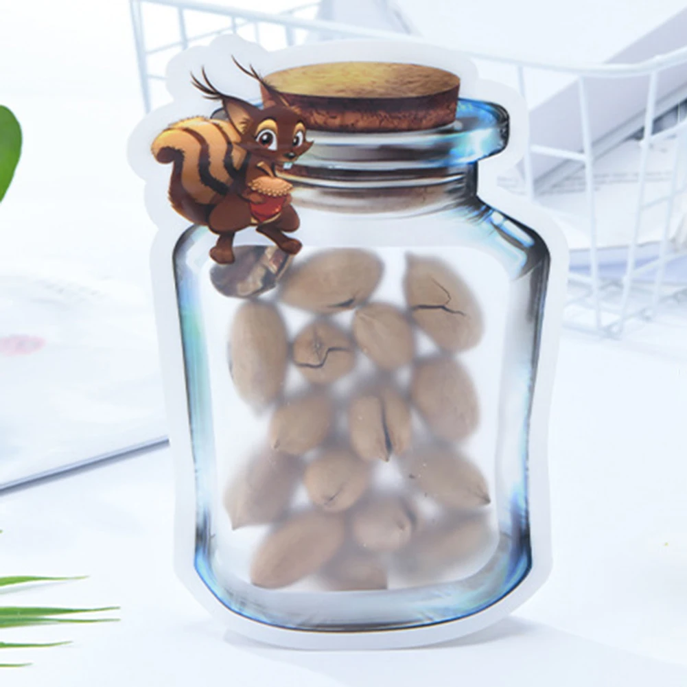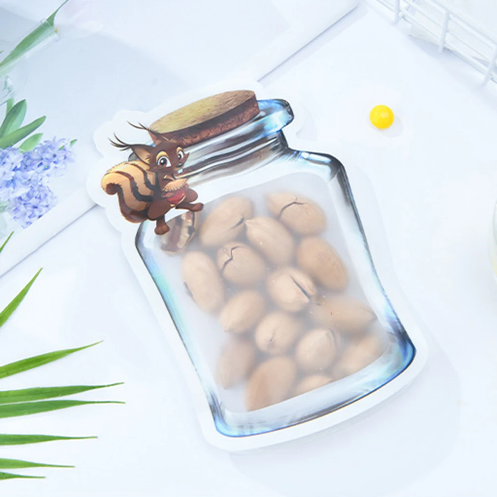 5 шт.компл., многоразовые мешки на молнии с изображением белки и Мейсона, для орехов, сладостей, снэков, печенья